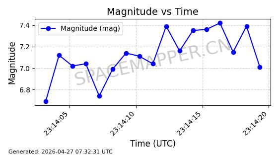 | STARLINK-31418 | 59251 | 59251 | 2024-03-16 同日期轨道 2024-049W 同批次轨道 | 已陨落 | 88分钟 | 42.9770 | 182.906 | 202.094 | 0.0014601 | 2025-03-16 18:35:31 | ||