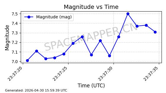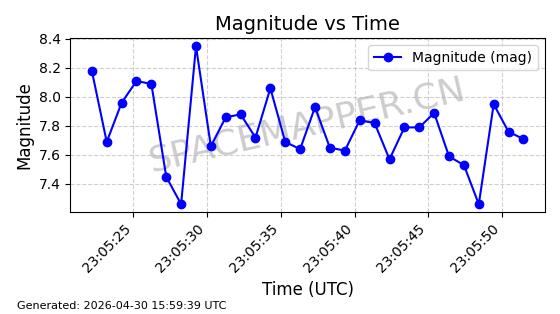 | STARLINK-31359 | 58945 | 58945 | 2024-02-10 同日期轨道 2024-027Q 同批次轨道 | 在轨 | 94分钟 | 53.1629 | 474.412 | 476.084 | 0.0001219 | 2026-04-30 03:10:07 | ||