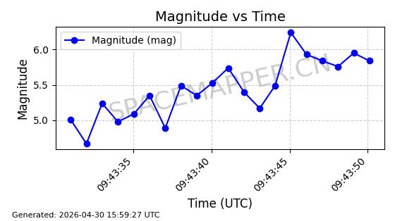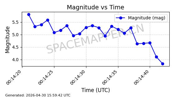 | STARLINK-31400 | 59405 | 59405 | 2024-04-05 同日期轨道 2024-064H 同批次轨道 | 在轨 | 94分钟 | 42.9982 | 482.953 | 483.261 | 0.0000223 | 2026-04-30 01:04:50 | ||