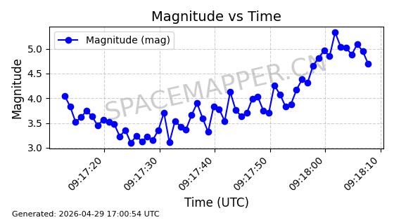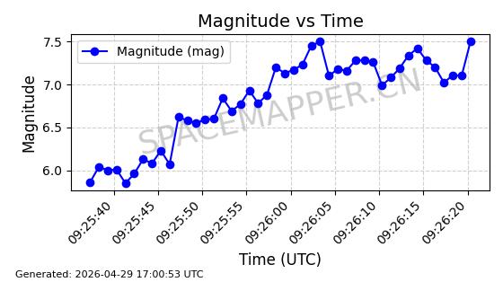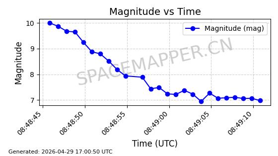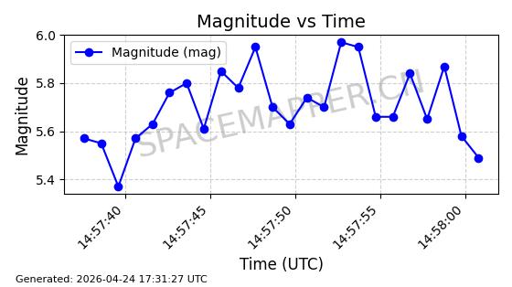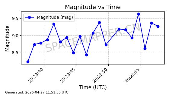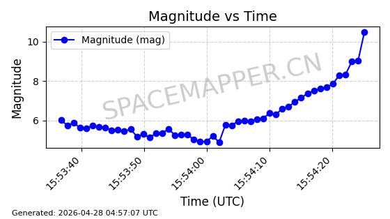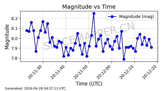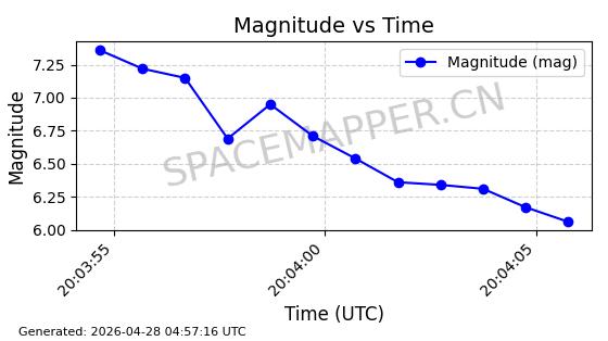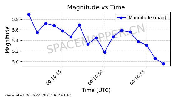 | STARLINK-11240 | 60929 | 60929 | 2024-08-31 同日期轨道 2024-155F 同批次轨道 | 在轨 | 92分钟 | 53.1595 | 359.362 | 360.194 | 0.0000617 | 2026-04-28 05:30:09 | ||