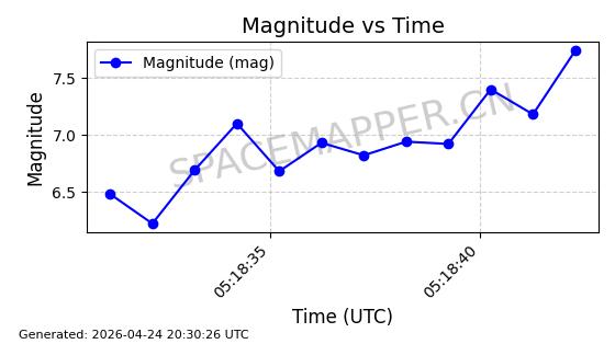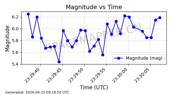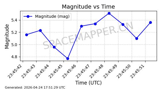 | STARLINK-11251 | 60930 | 60930 | 2024-08-31 同日期轨道 2024-155G 同批次轨道 | 在轨 | 92分钟 | 53.1590 | 359.447 | 360.105 | 0.0000488 | 2026-04-28 05:23:05 | ||