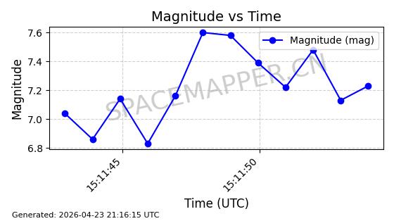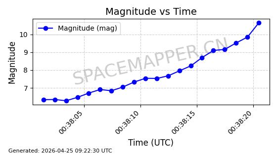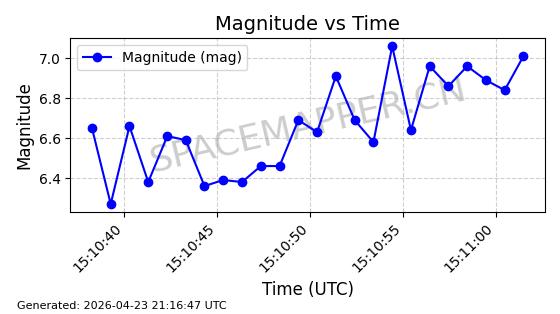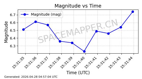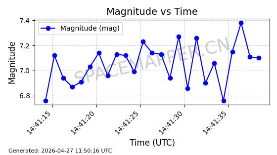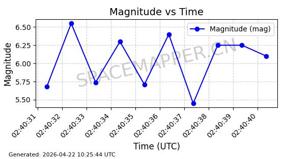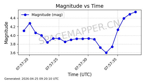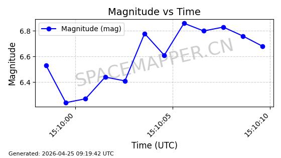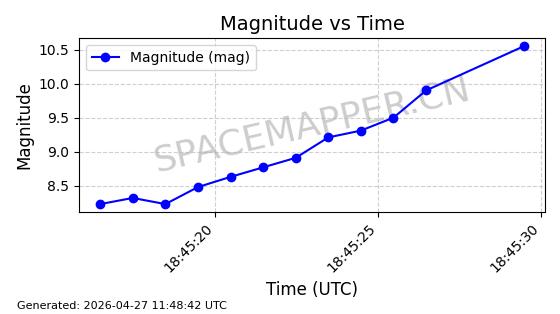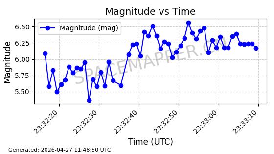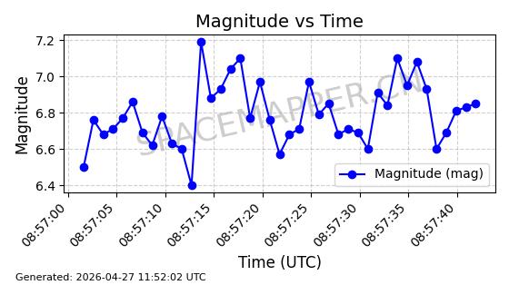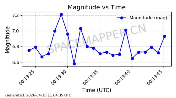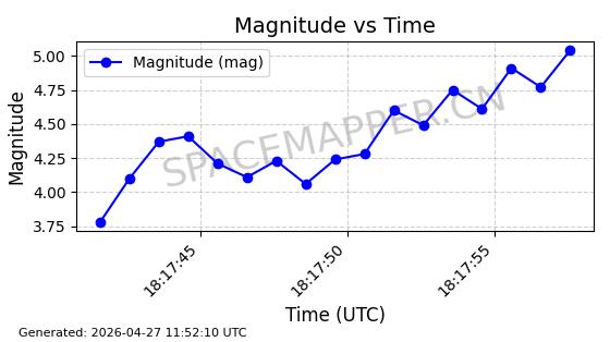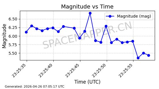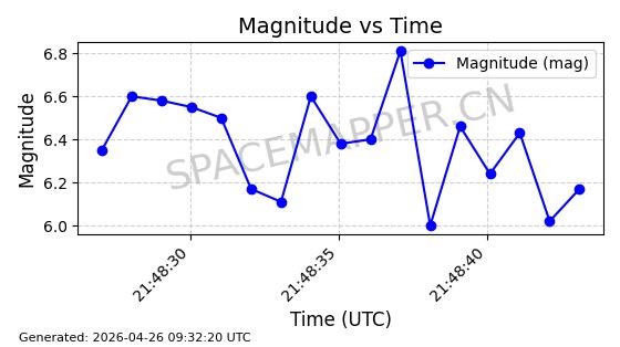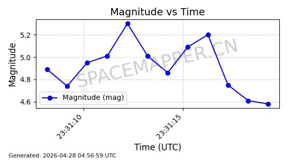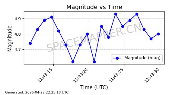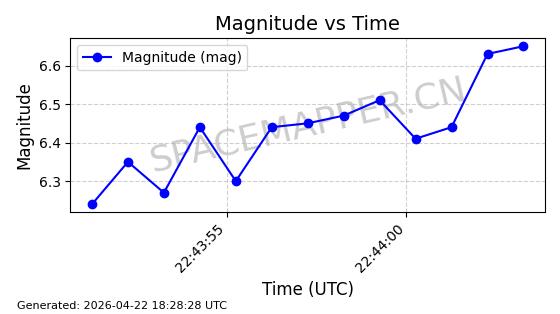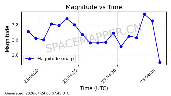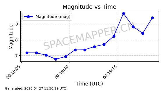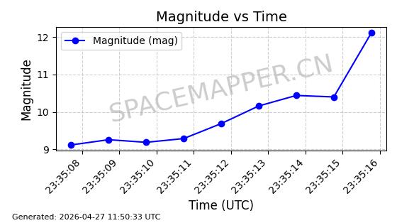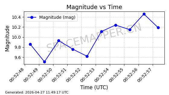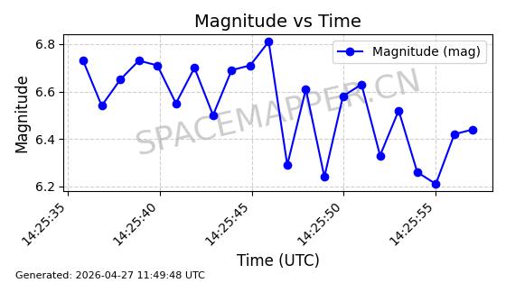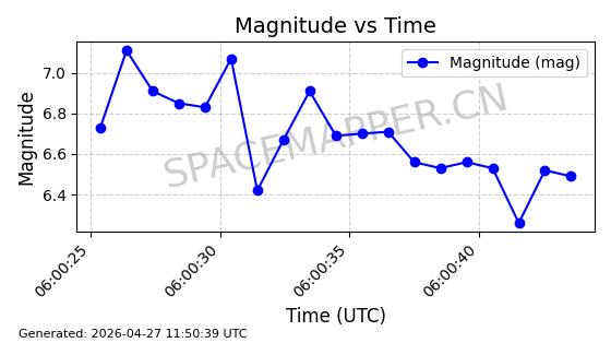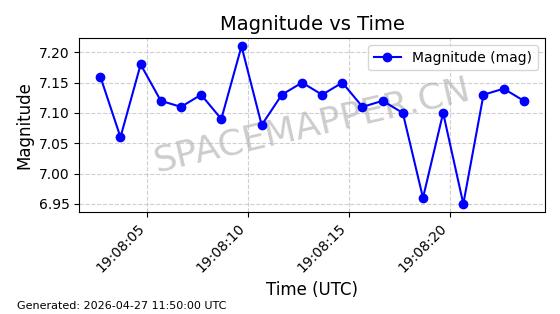 | STARLINK-11235 | 60726 | 60726 | 2024-08-28 同日期轨道 2024-152G 同批次轨道 | 在轨 | 92分钟 | 53.1583 | 359.049 | 360.401 | 0.0001002 | 2026-04-28 00:32:11 | ||