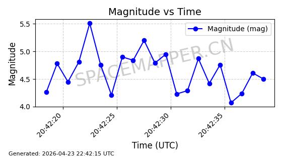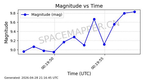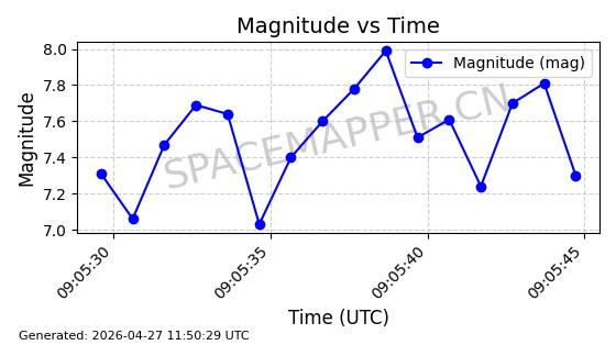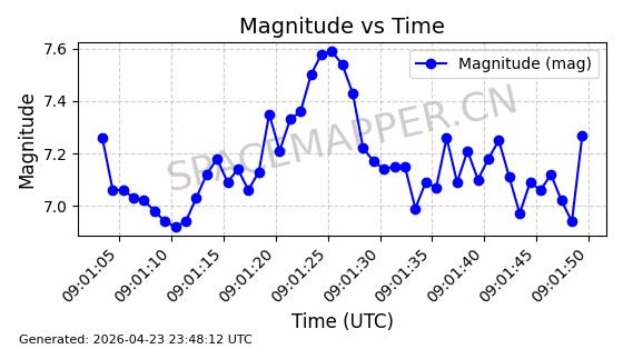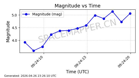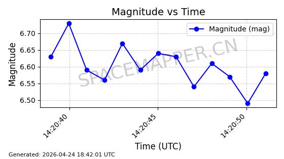 | STARLINK-11290 | 61000 | 61000 | 2024-09-05 同日期轨道 2024-158L 同批次轨道 | 在轨 | 92分钟 | 53.1598 | 358.853 | 360.655 | 0.0001337 | 2026-04-28 00:41:00 | ||