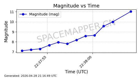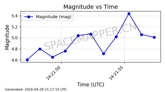 | STARLINK-11259 | 60721 | 60721 | 2024-08-28 同日期轨道 2024-152B 同批次轨道 | 在轨 | 92分钟 | 53.1605 | 358.941 | 360.573 | 0.0001210 | 2026-04-28 01:07:30 | ||