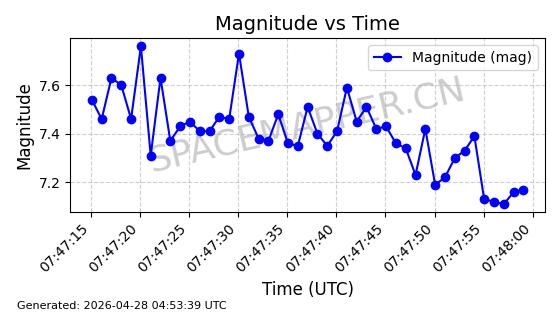 | STARLINK-11266 | 60732 | 60732 | 2024-08-28 同日期轨道 2024-152N 同批次轨道 | 在轨 | 92分钟 | 53.1606 | 359.063 | 360.417 | 0.0001004 | 2026-04-28 07:28:13 | ||