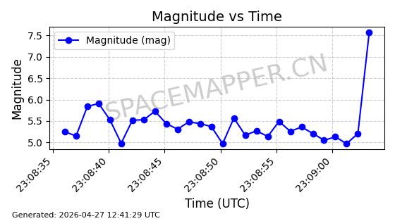 | STARLINK-11272 | 60723 | 60723 | 2024-08-28 同日期轨道 2024-152D 同批次轨道 | 在轨 | 92分钟 | 53.1594 | 359.075 | 360.431 | 0.0001006 | 2026-04-28 00:46:18 | ||
