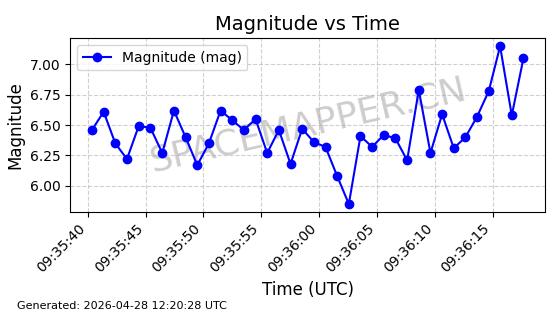 | STARLINK-11241 | 60936 | 60936 | 2024-08-31 同日期轨道 2024-155N 同批次轨道 | 在轨 | 92分钟 | 53.1606 | 359.186 | 360.33 | 0.0000848 | 2026-04-28 04:33:47 | ||