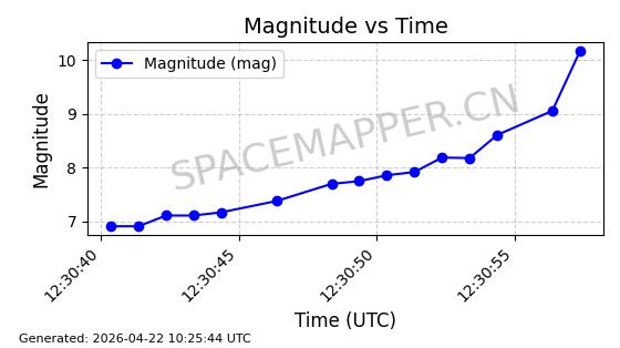| STARLINK-11331 | 61537 | 61537 | 2024-10-15 同日期轨道 2024-184F 同批次轨道 | 已陨落 | 89分钟 | 53.1387 | 225.228 | 233.534 | 0.0006285 | 2026-04-02 12:46:57 | ||