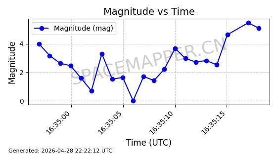 | STARLINK-11262 | 62009 | 62009 | 2024-11-18 同日期轨道 2024-213B 同批次轨道 | 在轨 | 92分钟 | 53.1575 | 358.889 | 360.489 | 0.0001187 | 2026-04-28 07:16:00 | ||