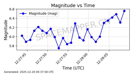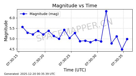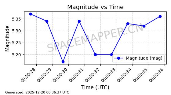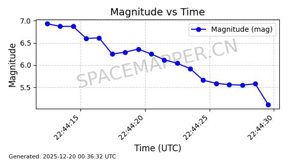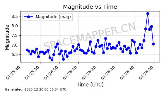 | STARLINK-31485 | 59308 | 59308 | 2024-03-24 同日期轨道 2024-056N 同批次轨道 | 在轨 | 94分钟 | 42.9964 | 482.488 | 483.632 | 0.0000833 | 2025-12-19 00:26:27 | ||