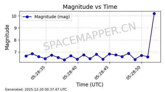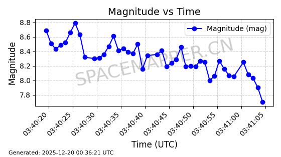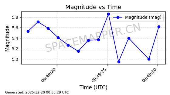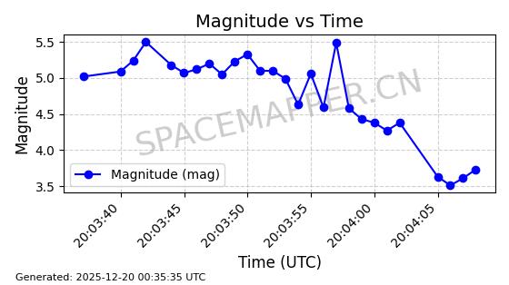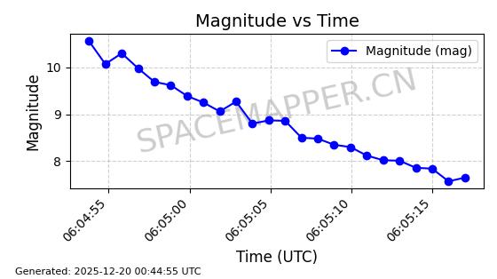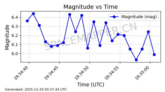 | STARLINK-31475 | 59310 | 59310 | 2024-03-24 同日期轨道 2024-056Q 同批次轨道 | 在轨 | 94分钟 | 43.0017 | 481.903 | 484.195 | 0.0001669 | 2025-12-19 06:40:04 | ||