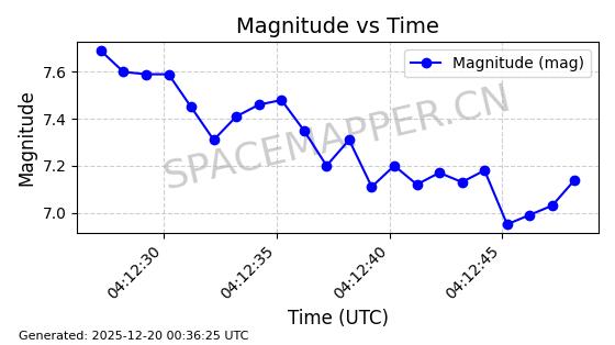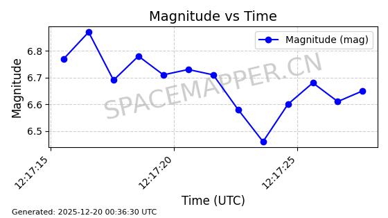 | STARLINK-31446 | 59315 | 59315 | 2024-03-24 同日期轨道 2024-056V 同批次轨道 | 在轨 | 94分钟 | 43.0047 | 482.512 | 483.618 | 0.0000805 | 2025-12-18 23:27:15 | ||