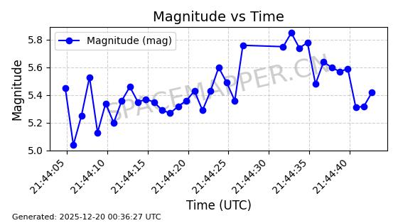 | STARLINK-3148 | 49736 | 49736 | 2021-12-02 同日期轨道 2021-115N 同批次轨道 | 在轨 | 95分钟 | 53.2170 | 538.207 | 541.265 | 0.0002209 | 2025-12-18 20:25:43 | ||
