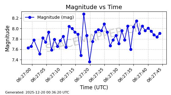 | STARLINK-31441 | 60091 | 60091 | 2024-06-23 同日期轨道 2024-117A 同批次轨道 | 在轨 | 94分钟 | 53.1607 | 474.519 | 475.909 | 0.0001014 | 2025-12-18 13:01:36 | ||