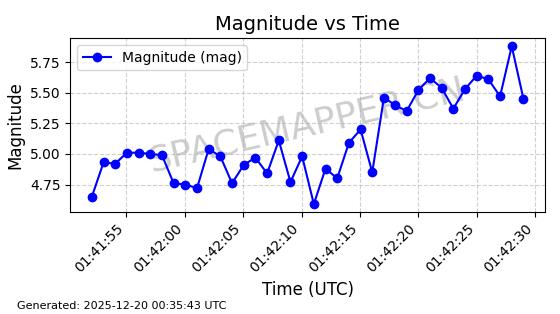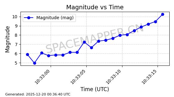 | STARLINK-31459 | 59233 | 59233 | 2024-03-16 同日期轨道 2024-049C 同批次轨道 | 在轨 | 94分钟 | 42.9989 | 482.254 | 483.806 | 0.0001131 | 2025-12-19 01:15:18 | ||