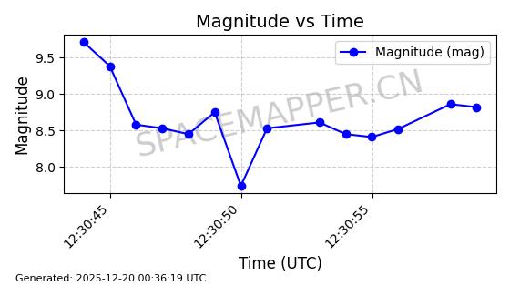 | STARLINK-31472 | 59730 | 59730 | 2024-05-13 同日期轨道 2024-090A 同批次轨道 | 在轨 | 94分钟 | 42.9998 | 484.825 | 486.227 | 0.0001020 | 2025-12-19 03:20:57 | ||