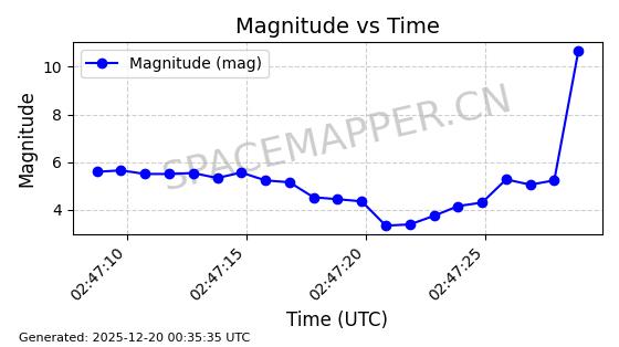 | STARLINK-31447 | 59302 | 59302 | 2024-03-24 同日期轨道 2024-056G 同批次轨道 | 在轨 | 94分钟 | 43.0049 | 482.162 | 483.898 | 0.0001265 | 2025-12-18 23:58:42 | ||