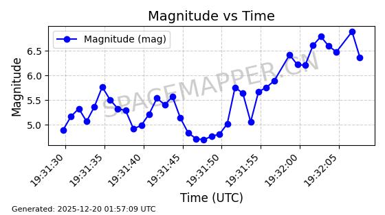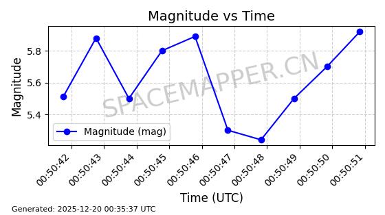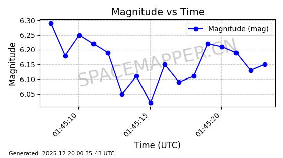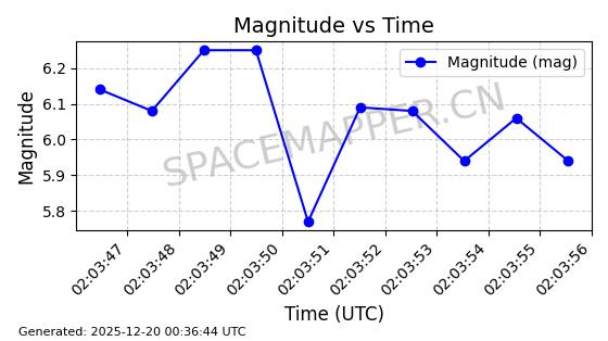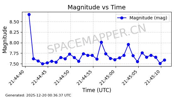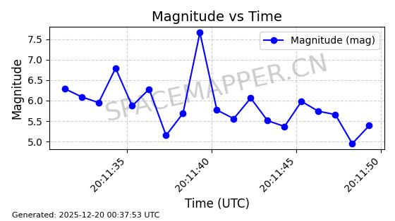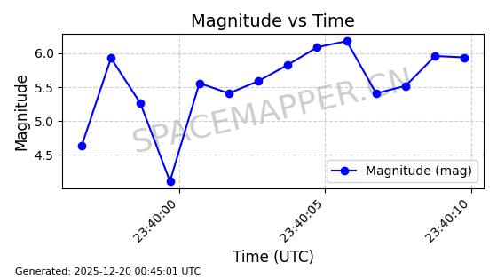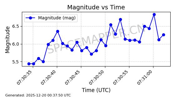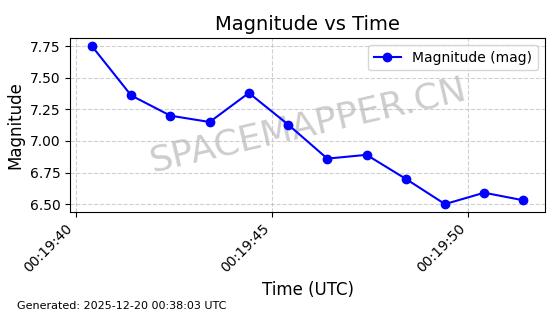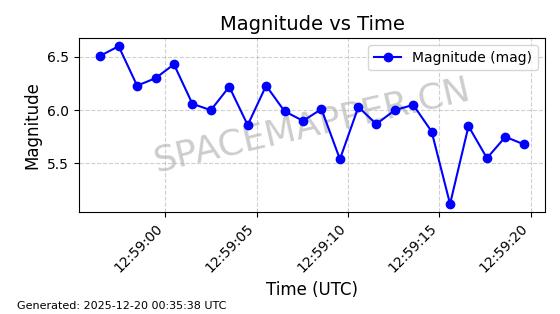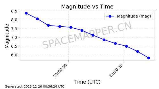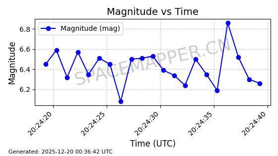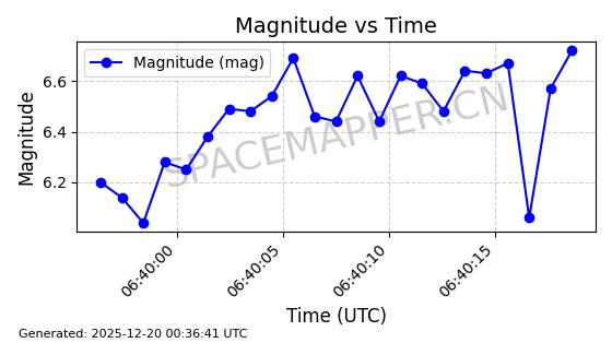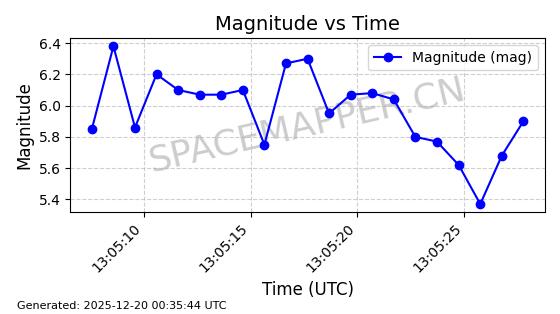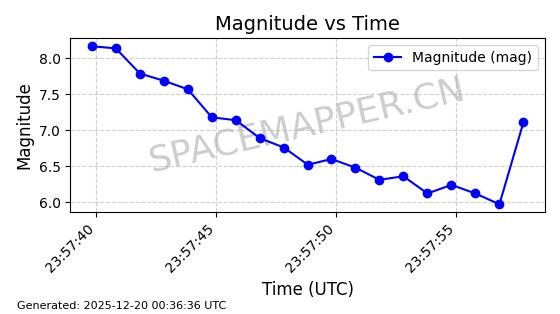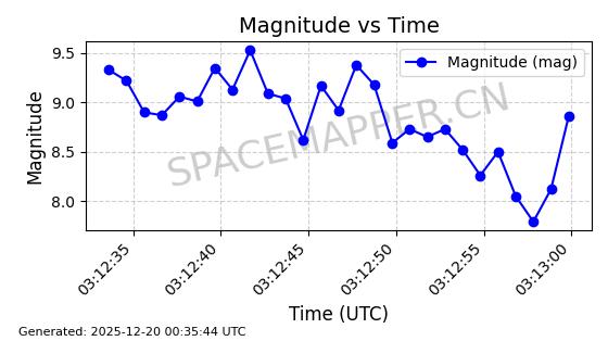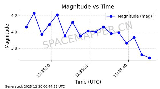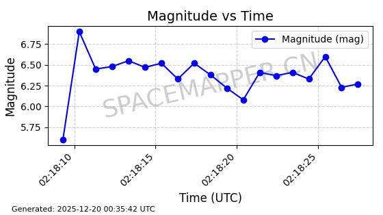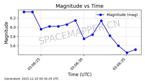 | STARLINK-31611 | 59325 | 59325 | 2024-03-25 同日期轨道 2024-057F 同批次轨道 | 在轨 | 94分钟 | 43.0033 | 482.212 | 483.834 | 0.0001181 | 2025-12-19 03:05:42 | ||