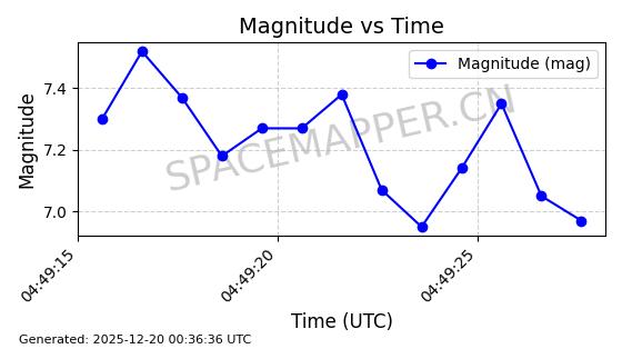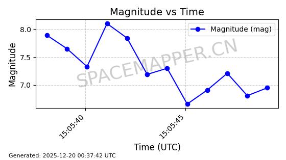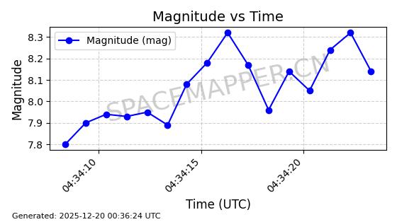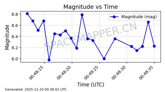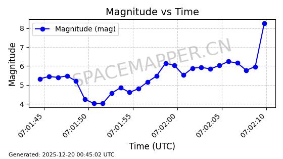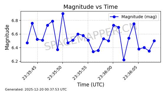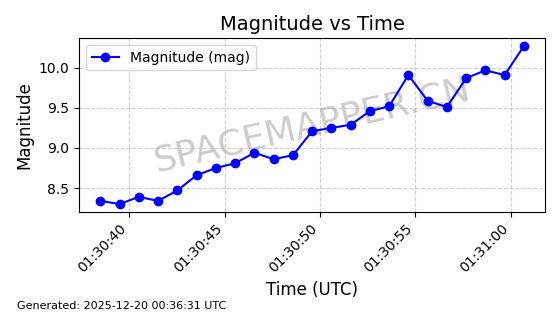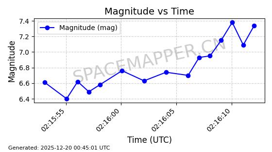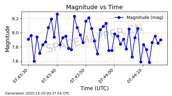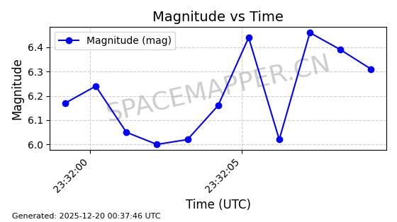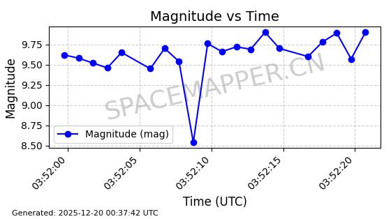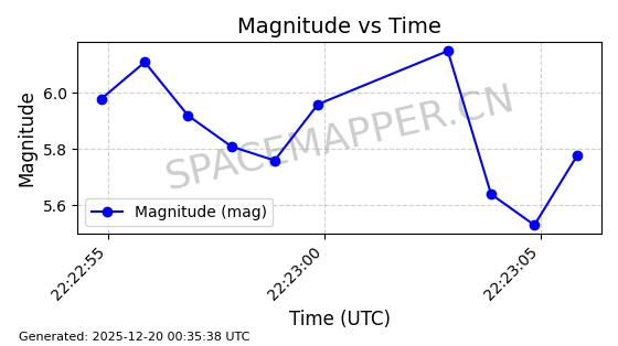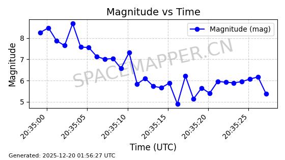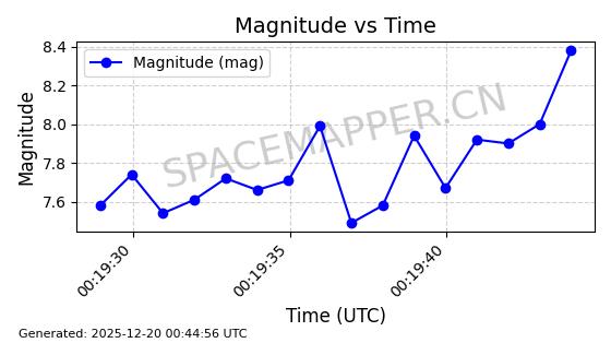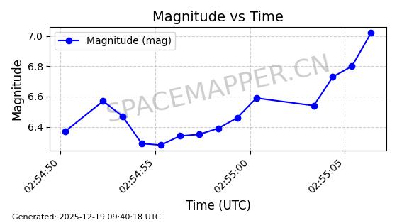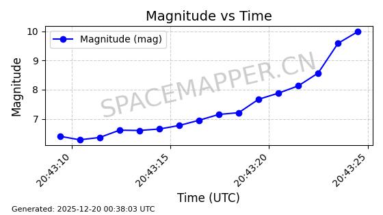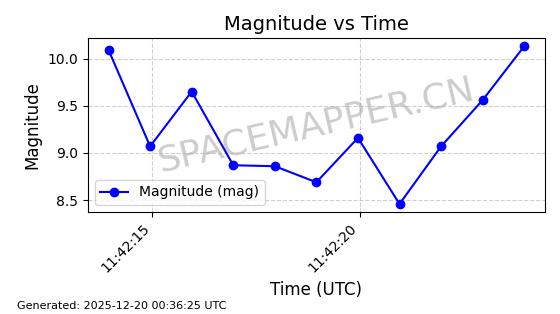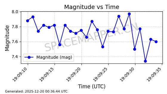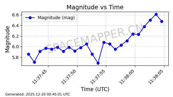 | STARLINK-31611 | 59325 | 59325 | 2024-03-25 同日期轨道 2024-057F 同批次轨道 | 在轨 | 94分钟 | 43.0033 | 482.212 | 483.834 | 0.0001181 | 2025-12-19 03:05:42 | ||