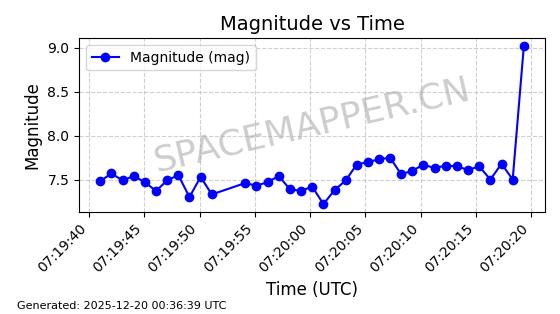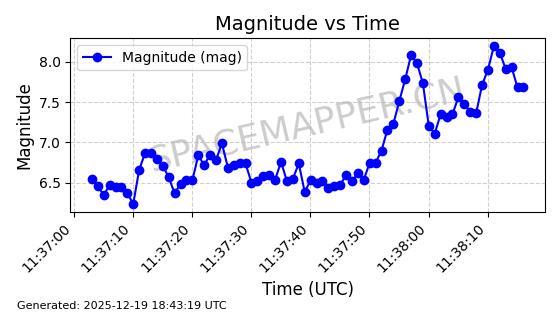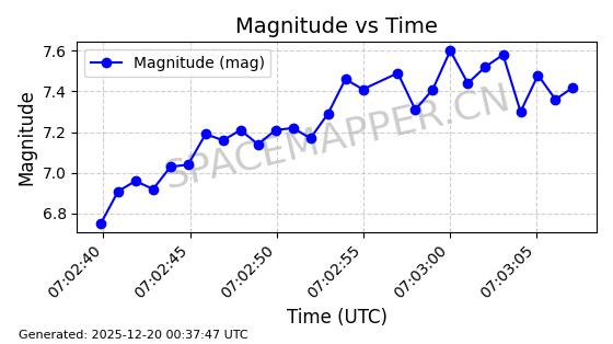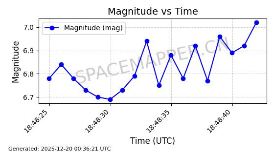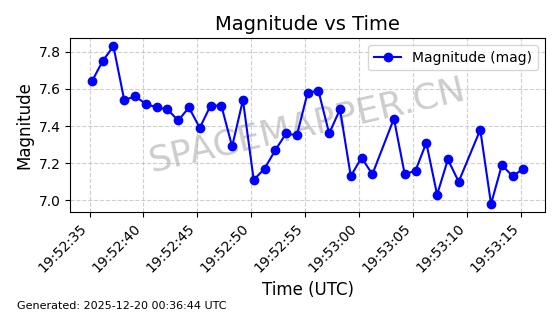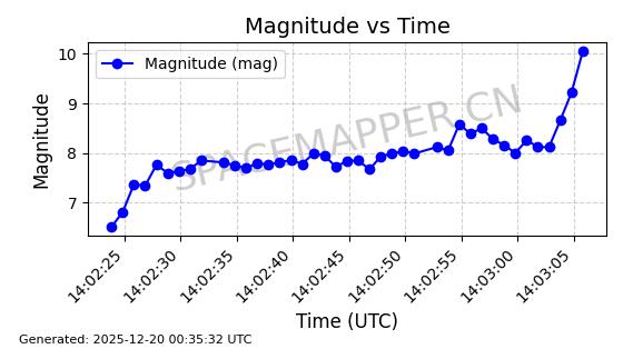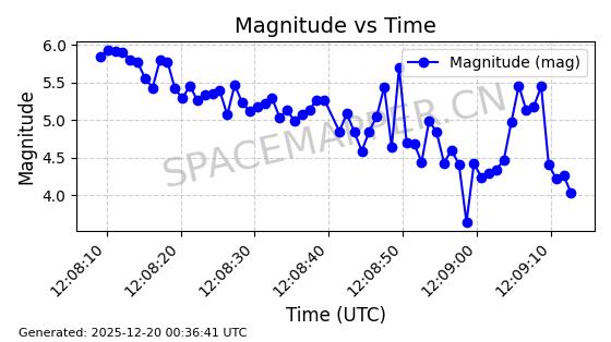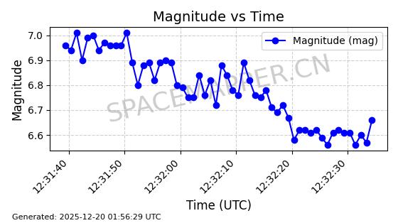 | STARLINK-31583 | 59369 | 59369 | 2024-03-31 同日期轨道 2024-060X 同批次轨道 | 在轨 | 94分钟 | 43.0017 | 482.627 | 483.467 | 0.0000612 | 2025-12-19 06:56:22 | ||