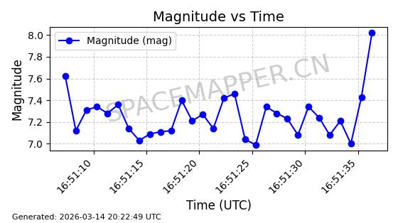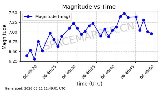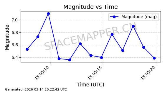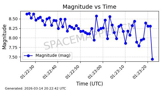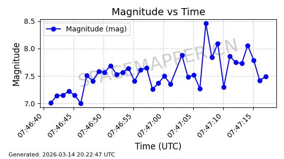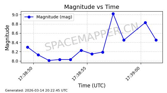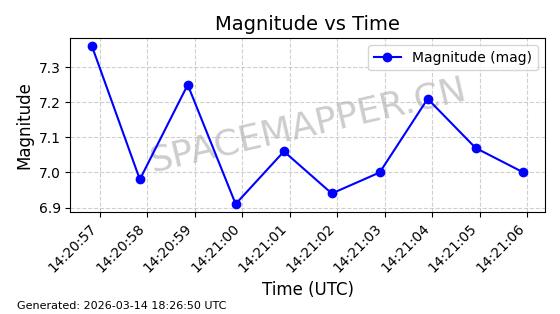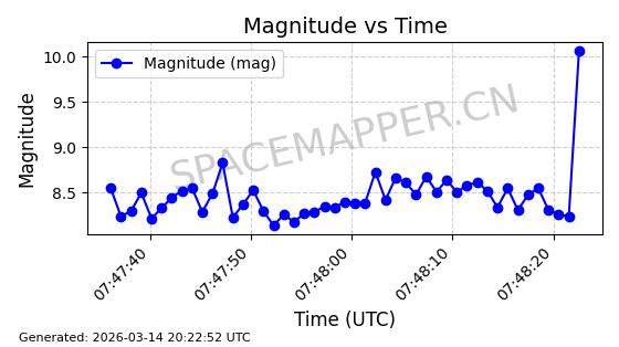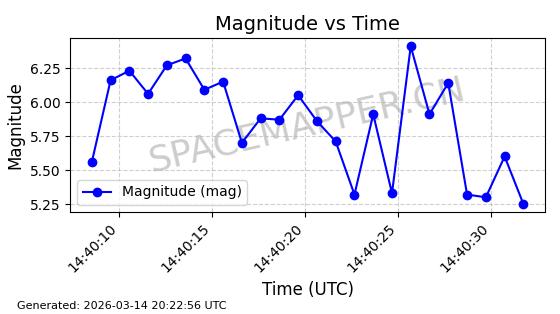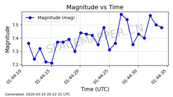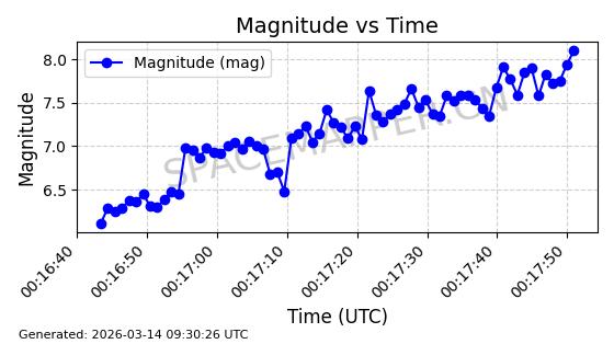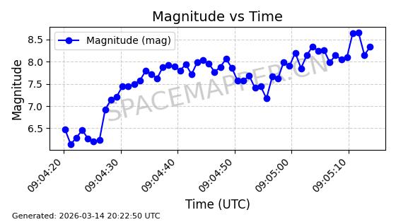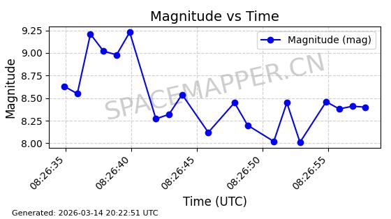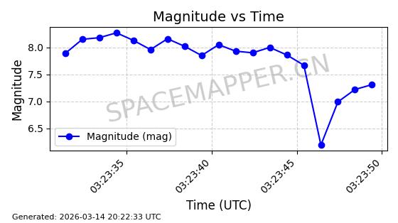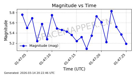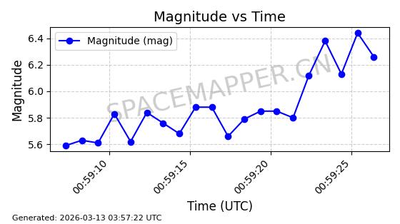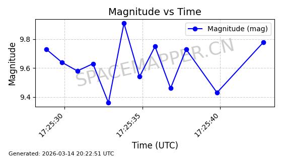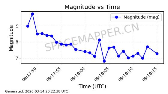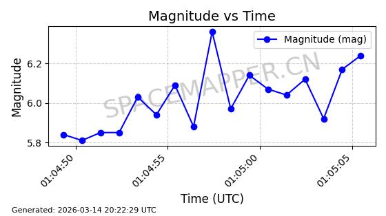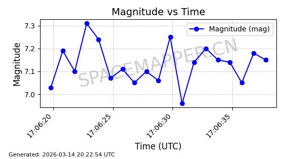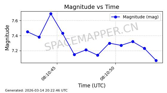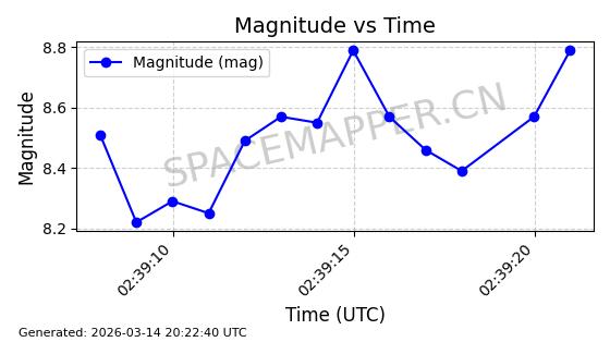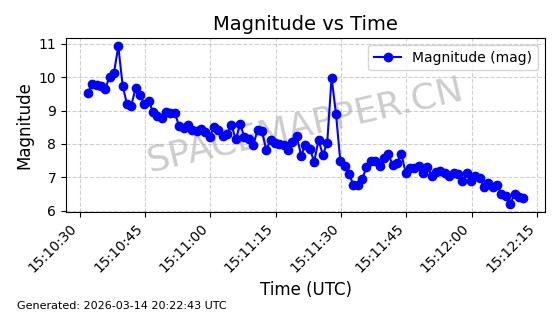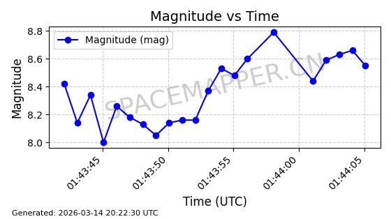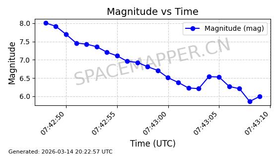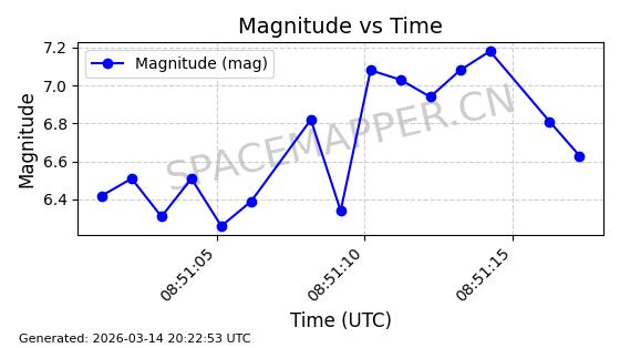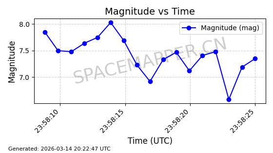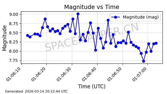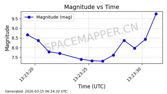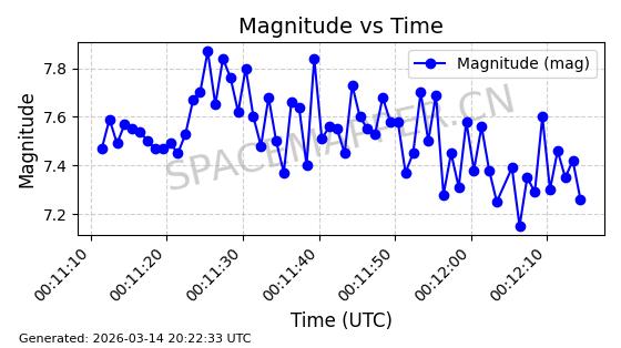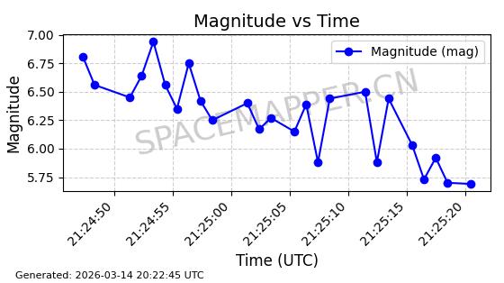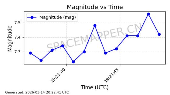 | STARLINK-4662 | 53738 | 53738 | 2022-09-05 同日期轨道 2022-107AQ 同批次轨道 | 在轨 | 95分钟 | 53.2170 | 538.85 | 540.674 | 0.0001318 | 2026-03-13 20:14:10 | ||