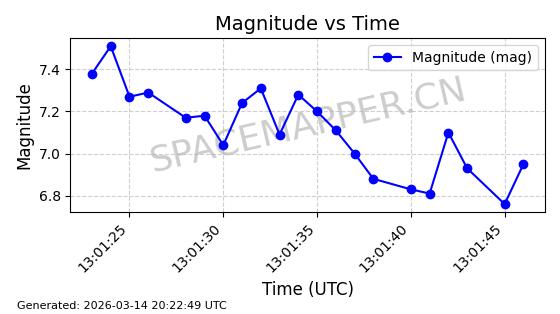 | STARLINK-4709 | 53778 | 53778 | 2022-09-11 同日期轨道 2022-111F 同批次轨道 | 在轨 | 95分钟 | 53.2161 | 538.913 | 540.601 | 0.0001219 | 2026-03-13 19:43:01 | ||