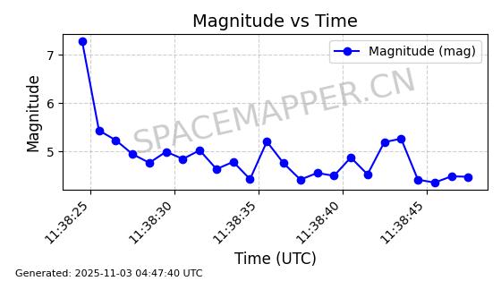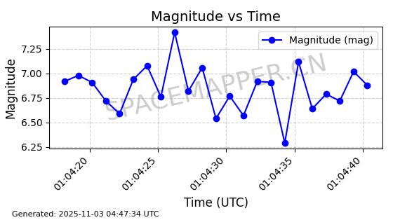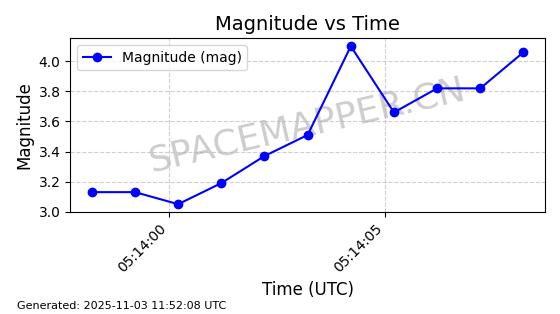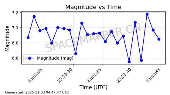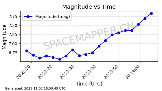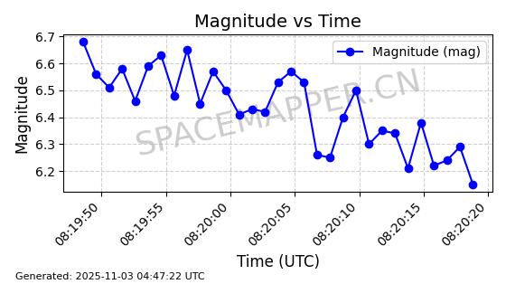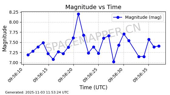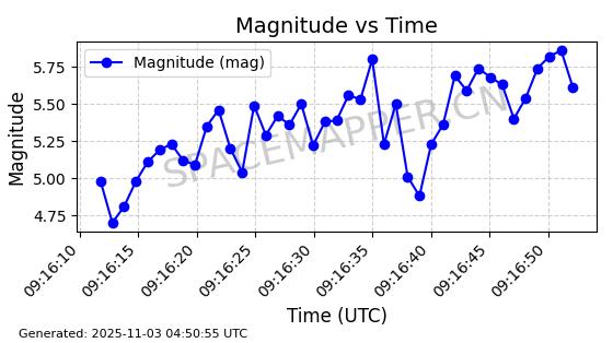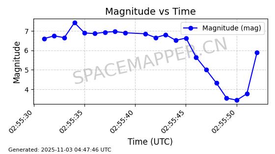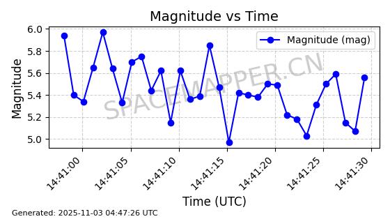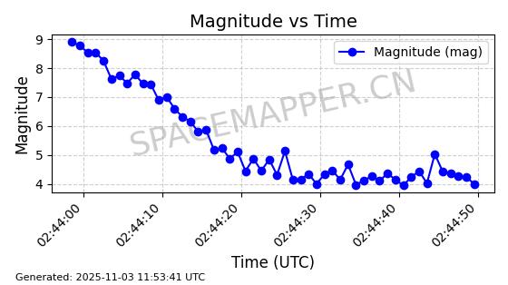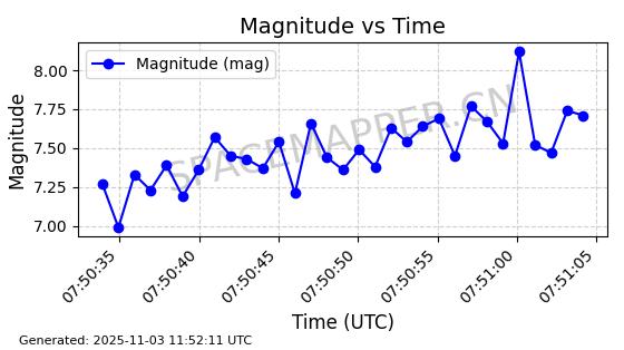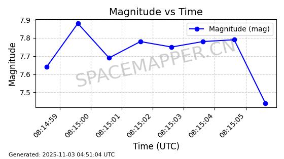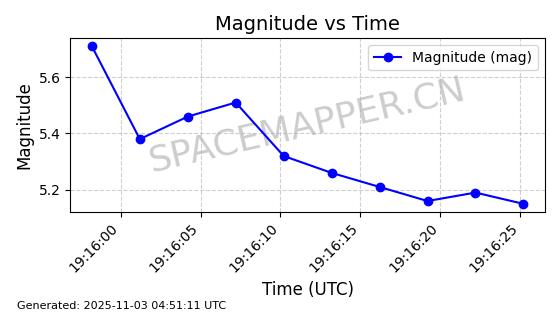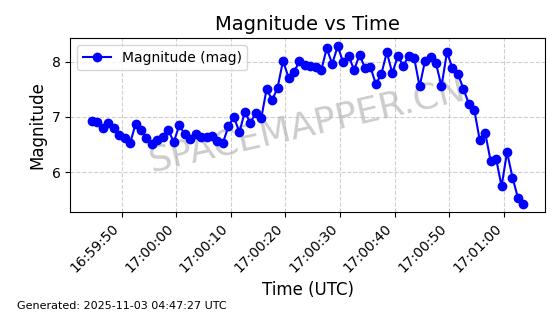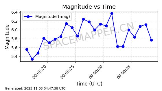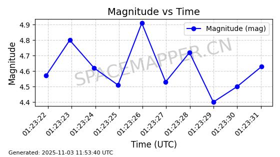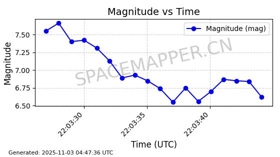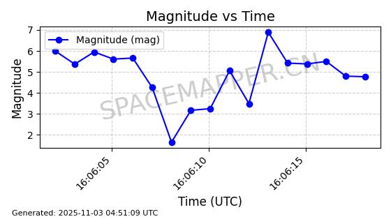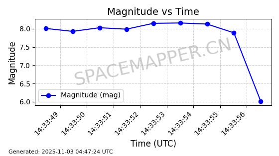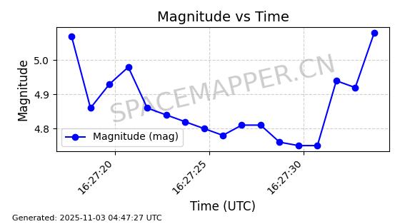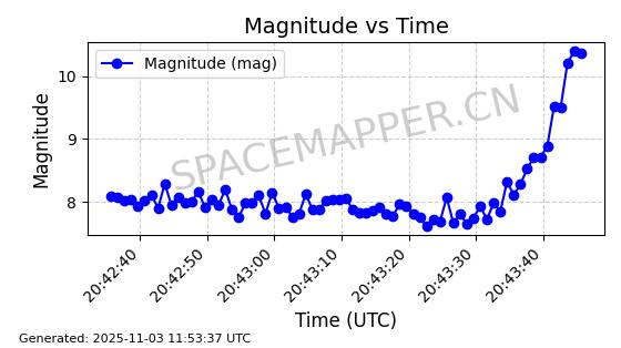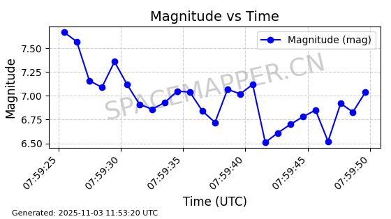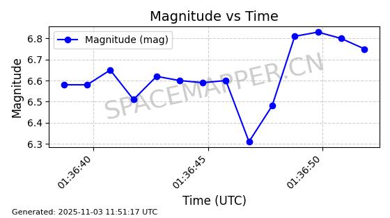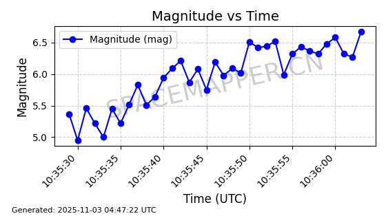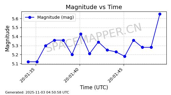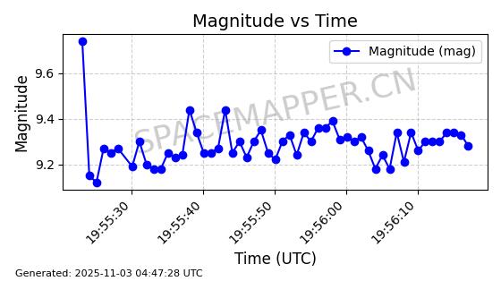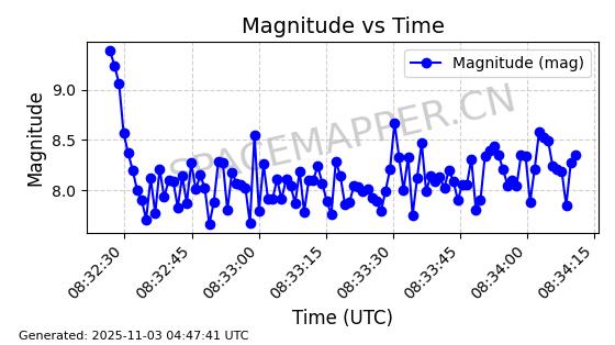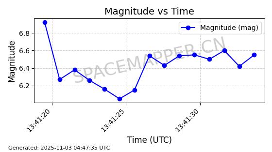 | STARLINK-31878 | 60031 | 60031 | 2024-06-08 同日期轨道 2024-111R 同批次轨道 | 在轨 | 94分钟 | 53.1604 | 474.439 | 475.951 | 0.0001103 | 2025-11-01 04:01:45 | ||