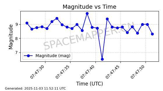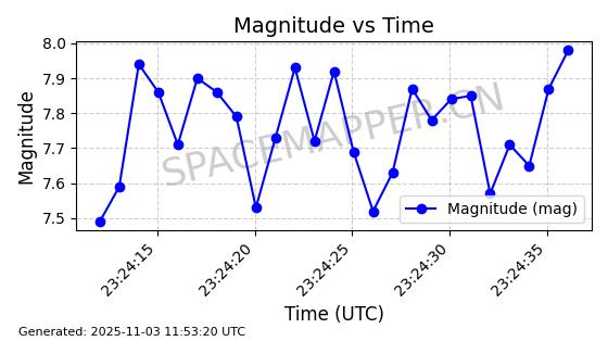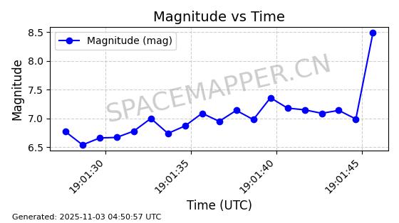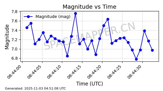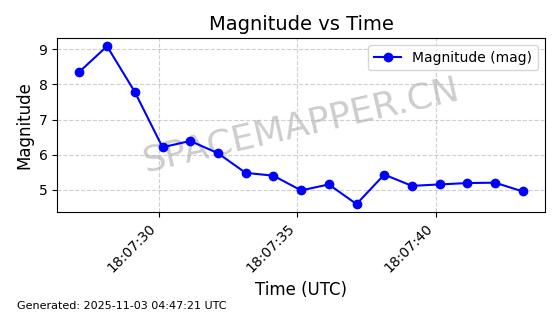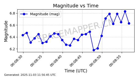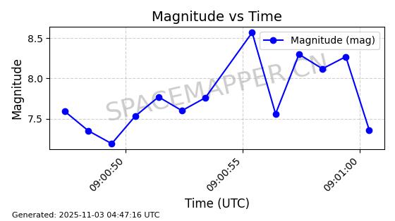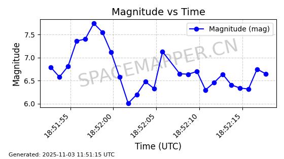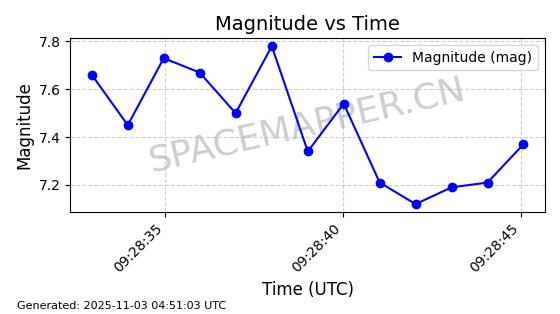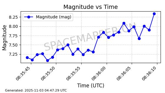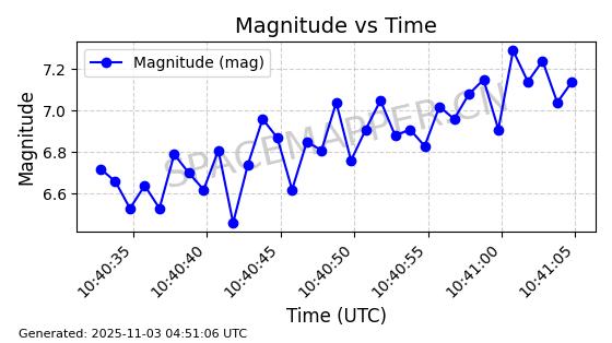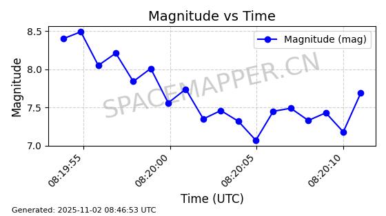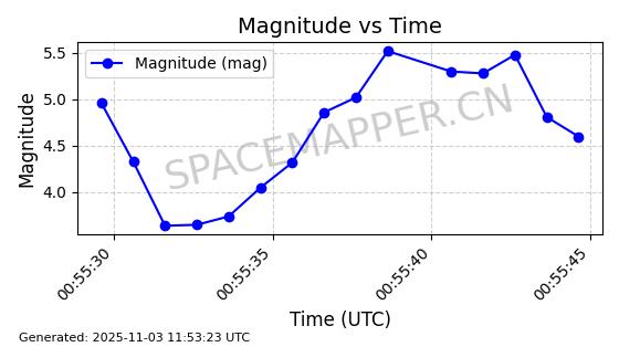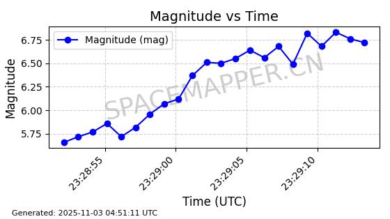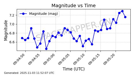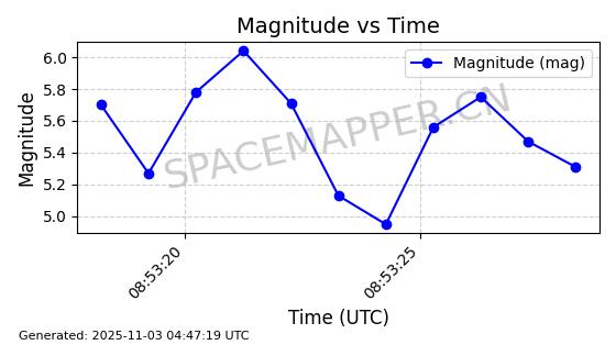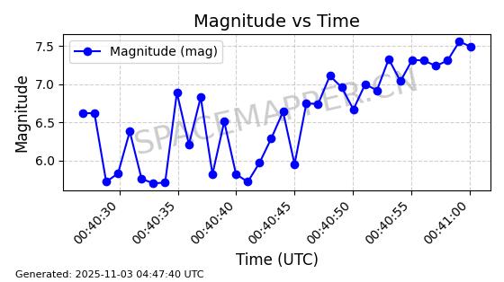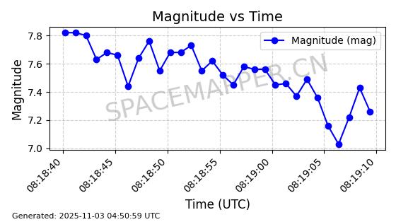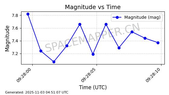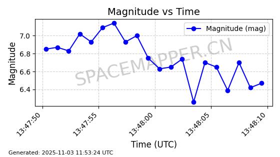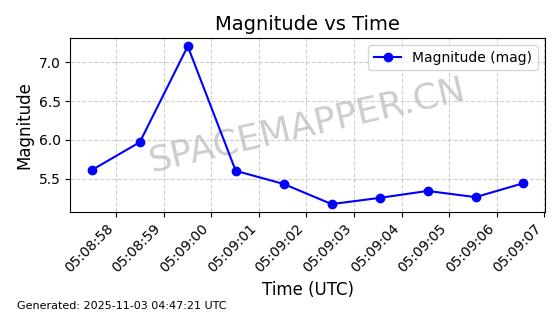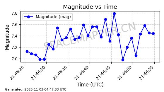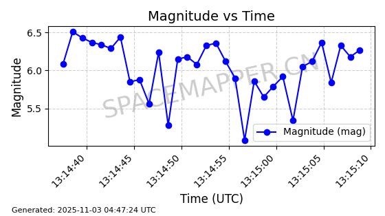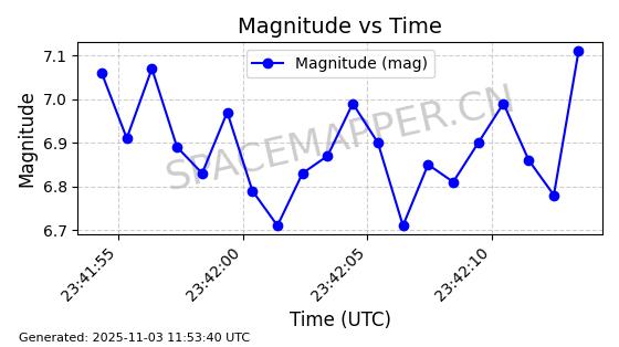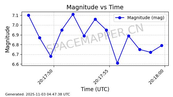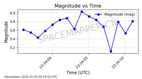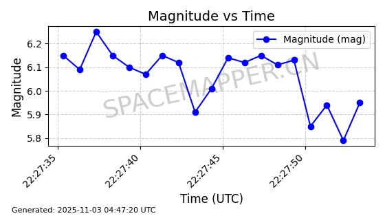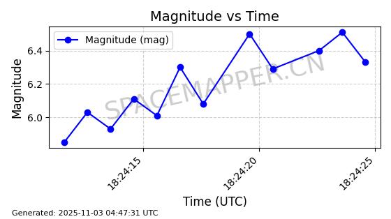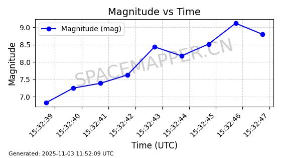 | STARLINK-31878 | 60031 | 60031 | 2024-06-08 同日期轨道 2024-111R 同批次轨道 | 在轨 | 94分钟 | 53.1604 | 474.439 | 475.951 | 0.0001103 | 2025-11-01 04:01:45 | ||