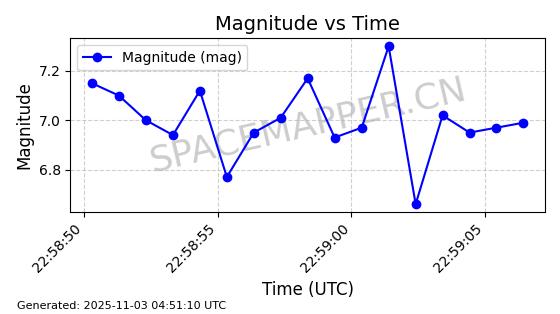 | STARLINK-31957 | 59926 | 59926 | 2024-06-01 同日期轨道 2024-106E 同批次轨道 | 在轨 | 94分钟 | 43.0017 | 482.576 | 483.552 | 0.0000711 | 2025-11-01 09:05:11 | ||