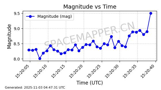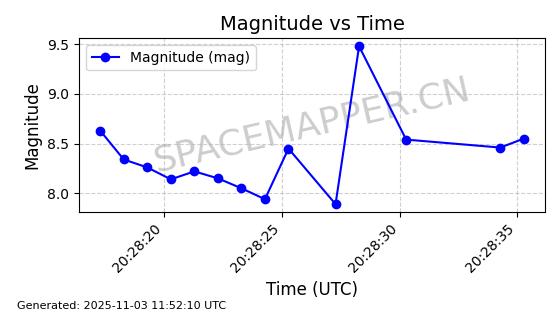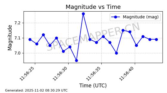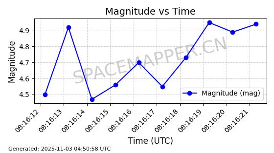 | STARLINK-31911 | 60587 | 60587 | 2024-08-20 同日期轨道 2024-150E 同批次轨道 | 在轨 | 94分钟 | 53.1619 | 474.415 | 476.101 | 0.0001230 | 2025-11-01 08:57:21 | ||