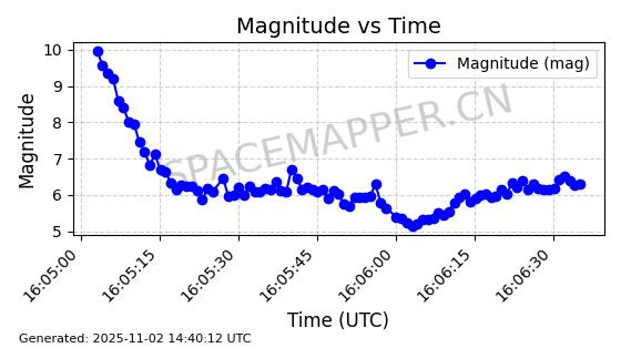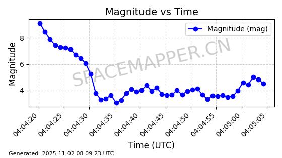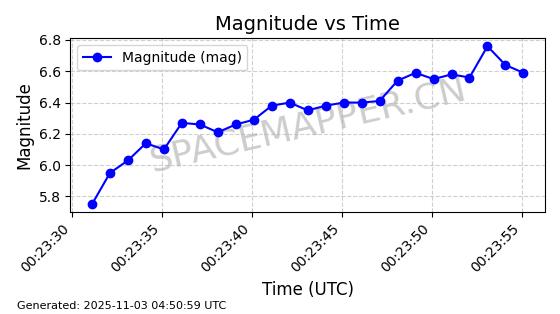 | STARLINK-31955 | 59939 | 59939 | 2024-06-01 同日期轨道 2024-106T 同批次轨道 | 在轨 | 94分钟 | 43.0041 | 482.284 | 483.716 | 0.0001043 | 2025-11-01 09:25:32 | ||