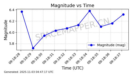 | STARLINK-31876 | 59938 | 59938 | 2024-06-01 同日期轨道 2024-106S 同批次轨道 | 在轨 | 94分钟 | 43.0038 | 482.368 | 483.738 | 0.0000997 | 2025-11-01 09:36:38 | ||