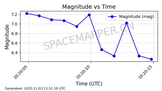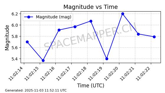 | STARLINK-3189 | 51464 | 51464 | 2022-02-03 同日期轨道 2022-010J 同批次轨道 | 在轨 | 95分钟 | 53.2151 | 538.854 | 540.654 | 0.0001300 | 2025-11-01 12:26:01 | ||