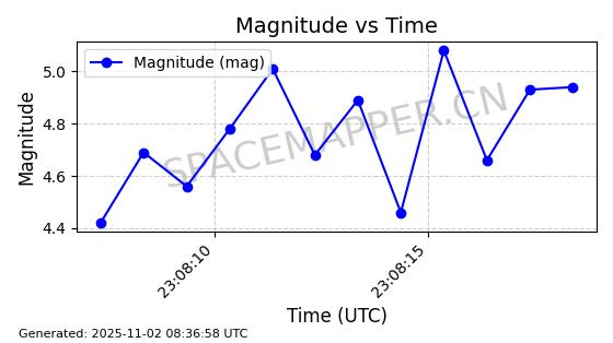 | STARLINK-31954 | 60102 | 60102 | 2024-06-23 同日期轨道 2024-117M 同批次轨道 | 在轨 | 94分钟 | 53.1612 | 474.386 | 476.104 | 0.0001253 | 2025-11-01 14:33:47 | ||