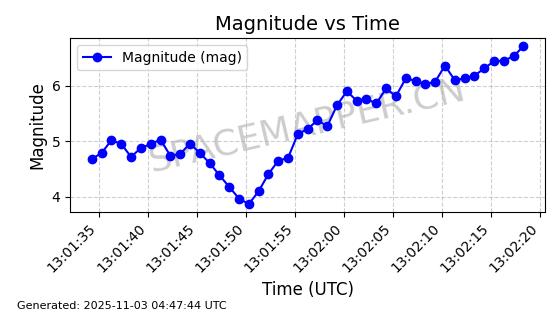 | STARLINK-31872 | 59922 | 59922 | 2024-06-01 同日期轨道 2024-106A 同批次轨道 | 在轨 | 94分钟 | 43.0026 | 482.666 | 483.446 | 0.0000568 | 2025-11-01 13:31:13 | ||