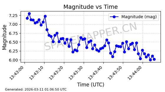 在轨 95分钟 53.2170 539.077 540.435 0.0000981 2026-03-13