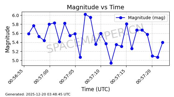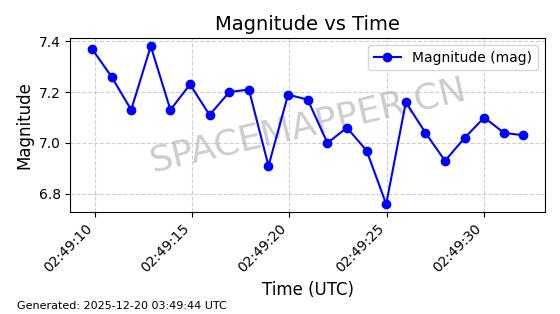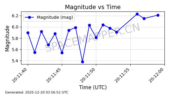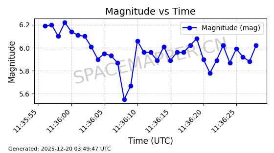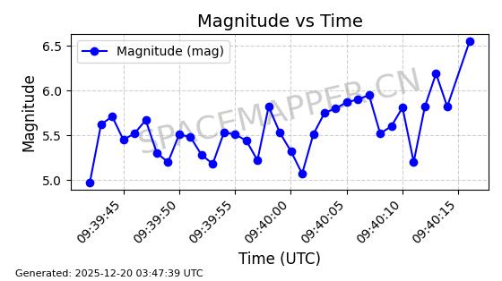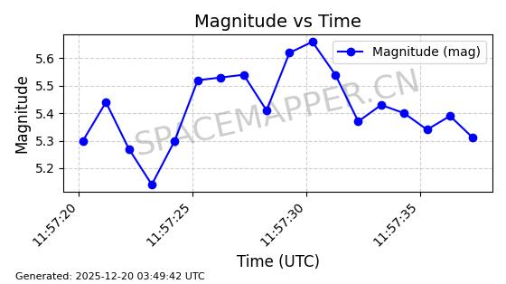 | STARLINK-32050 | 60137 | 60137 | 2024-06-27 同日期轨道 2024-120C 同批次轨道 | 在轨 | 94分钟 | 53.1605 | 474.434 | 475.976 | 0.0001124 | 2025-12-19 05:41:04 | ||