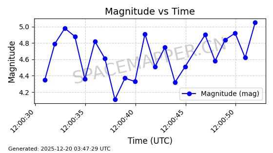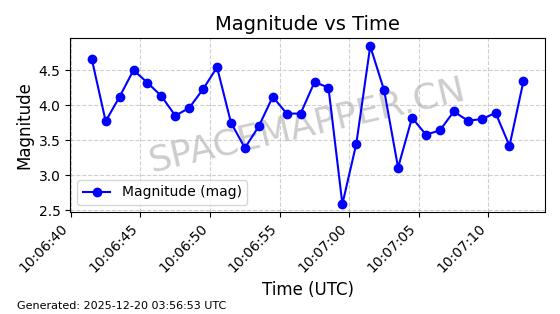 | STARLINK-32004 | 60151 | 60151 | 2024-06-27 同日期轨道 2024-120S 同批次轨道 | 在轨 | 94分钟 | 53.1608 | 474.369 | 476.113 | 0.0001272 | 2025-12-19 04:41:48 | ||