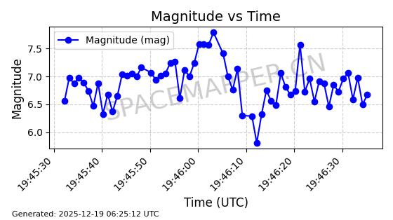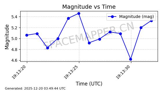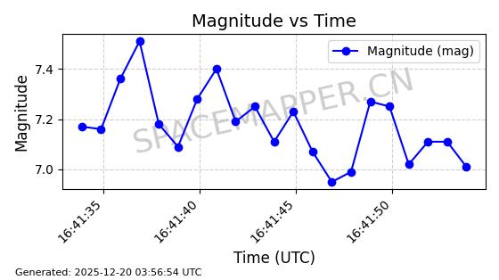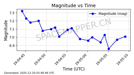 | STARLINK-32032 | 60077 | 60077 | 2024-06-19 同日期轨道 2024-113U 同批次轨道 | 在轨 | 94分钟 | 53.1618 | 474.245 | 476.021 | 0.0001295 | 2025-12-19 05:16:11 | ||