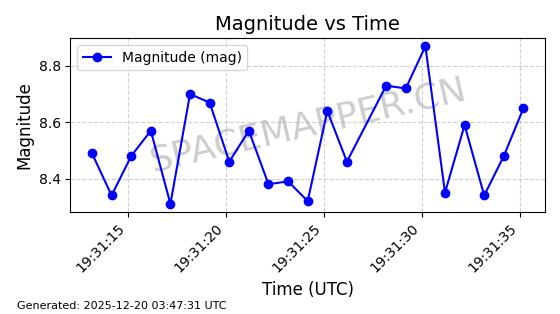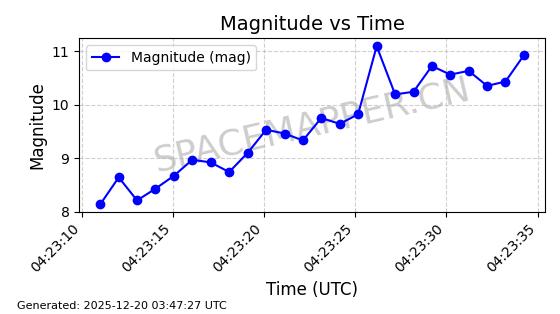 | STARLINK-31994 | 60588 | 60588 | 2024-08-20 同日期轨道 2024-150F 同批次轨道 | 在轨 | 94分钟 | 53.1618 | 474.416 | 476.062 | 0.0001200 | 2025-12-19 05:09:46 | ||