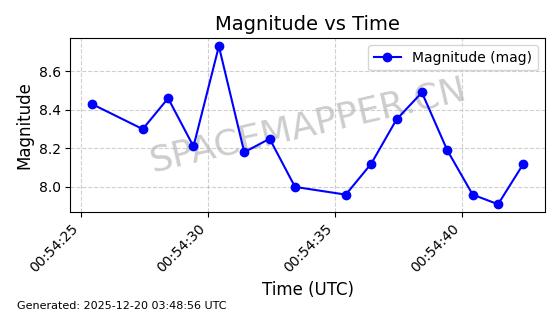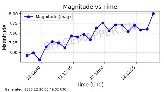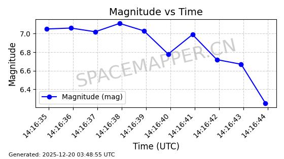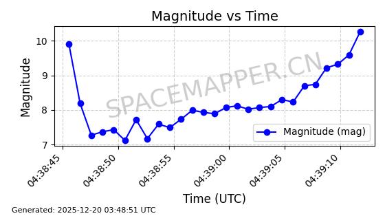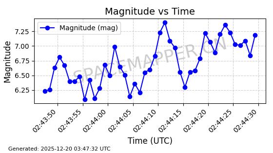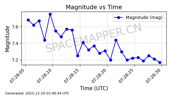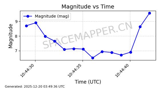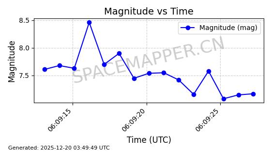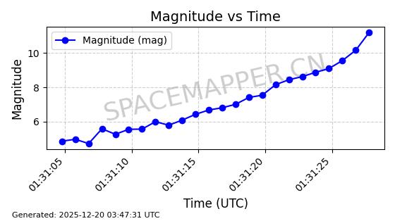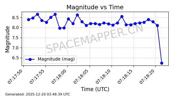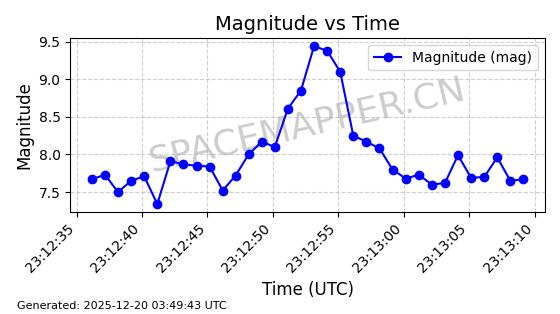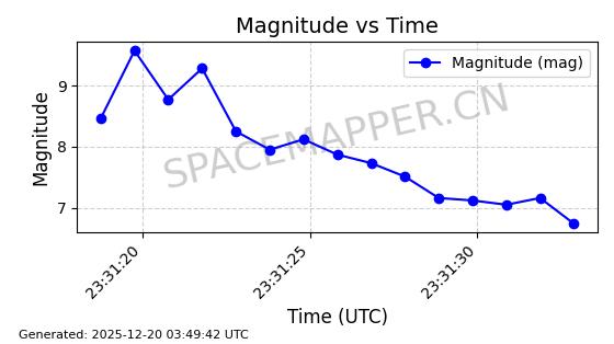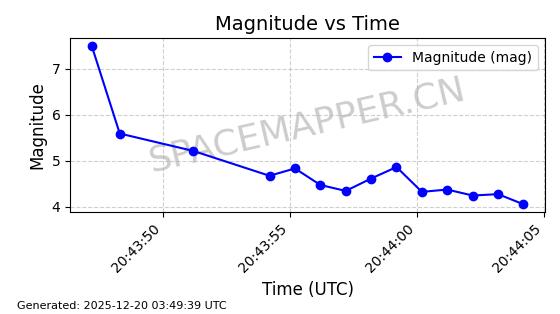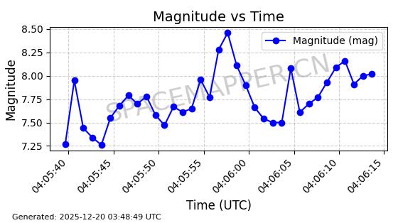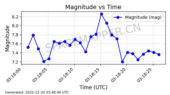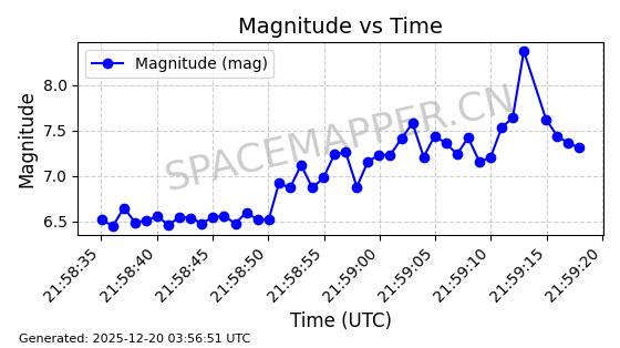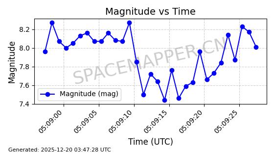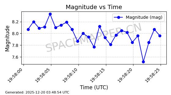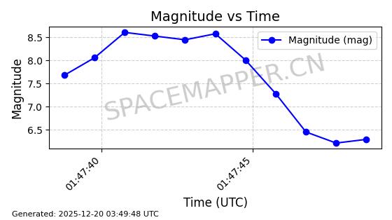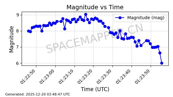 | STARLINK-31982 | 60022 | 60022 | 2024-06-08 同日期轨道 2024-111G 同批次轨道 | 在轨 | 94分钟 | 53.1609 | 474.509 | 475.979 | 0.0001072 | 2025-12-18 16:01:27 | ||