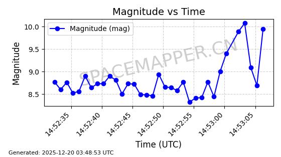 | STARLINK-32014 | 60150 | 60150 | 2024-06-27 同日期轨道 2024-120R 同批次轨道 | 在轨 | 94分钟 | 53.1620 | 474.252 | 476.248 | 0.0001456 | 2025-12-19 04:37:15 | ||