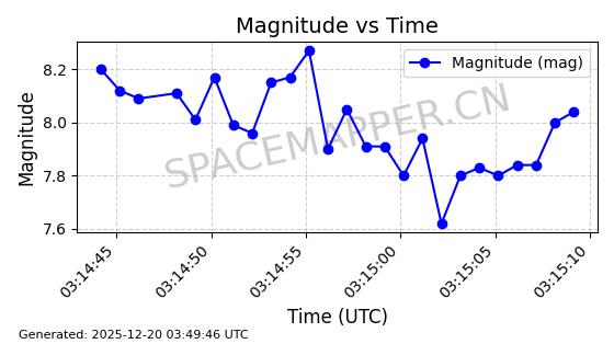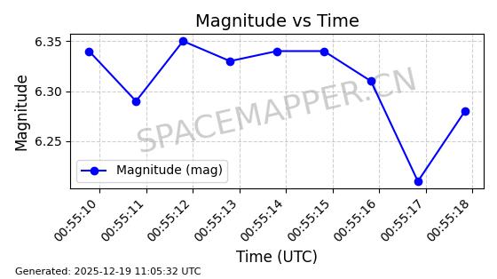 | STARLINK-32076 | 60350 | 60350 | 2024-08-02 同日期轨道 2024-136X 同批次轨道 | 在轨 | 94分钟 | 53.1614 | 474.495 | 476.037 | 0.0001124 | 2025-12-19 06:06:27 | ||