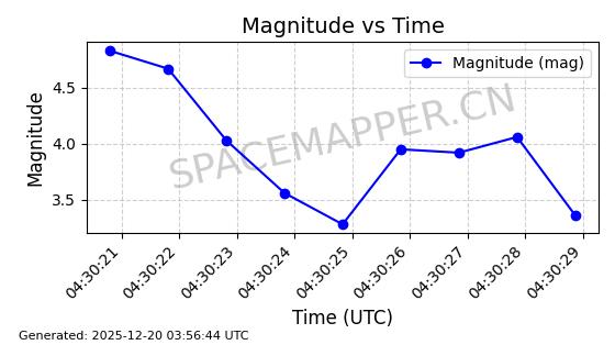 | STARLINK-32039 | 60604 | 60604 | 2024-08-20 同日期轨道 2024-150X 同批次轨道 | 在轨 | 94分钟 | 53.1627 | 474.15 | 476.316 | 0.0001580 | 2025-12-19 07:02:59 | ||