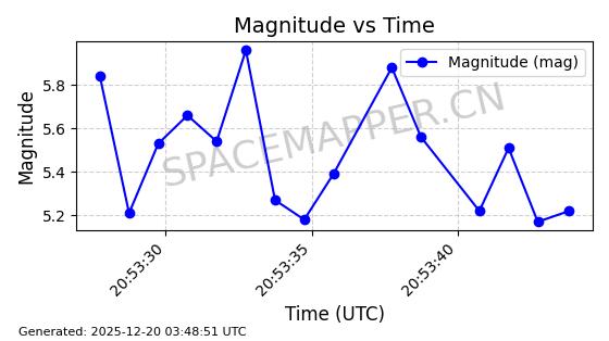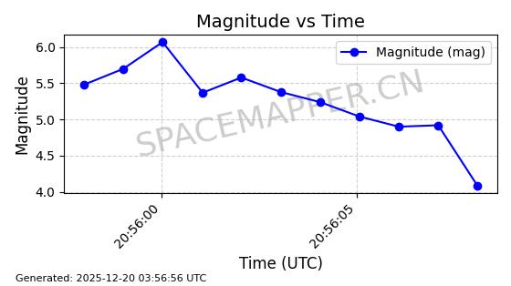 | STARLINK-32048 | 60156 | 60156 | 2024-06-27 同日期轨道 2024-120X 同批次轨道 | 在轨 | 94分钟 | 53.1622 | 474.274 | 476.26 | 0.0001448 | 2025-12-19 05:00:02 | ||