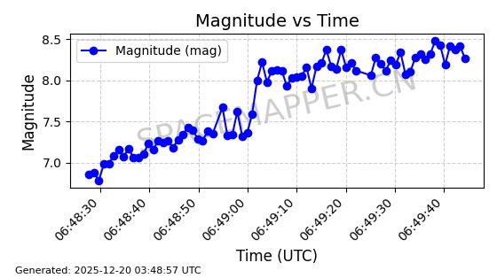| STARLINK-31988 | 60601 | 60601 | 2024-08-20 同日期轨道 2024-150U 同批次轨道 | 在轨 | 94分钟 | 53.1610 | 474.389 | 476.079 | 0.0001232 | 2025-12-19 04:18:16 | ||