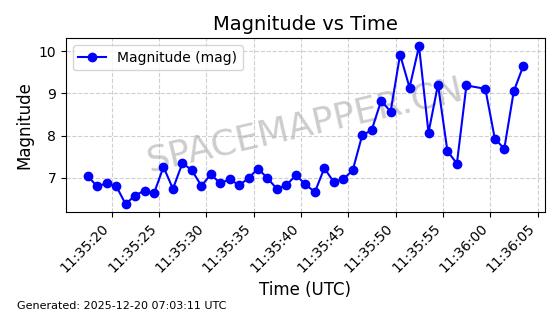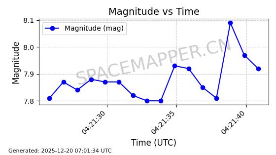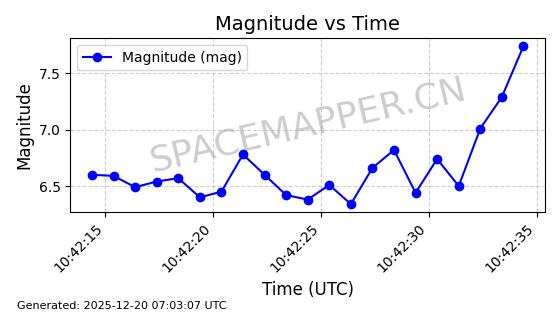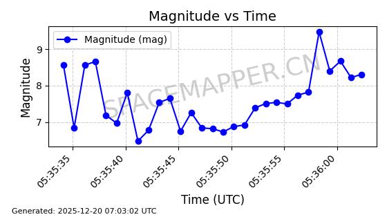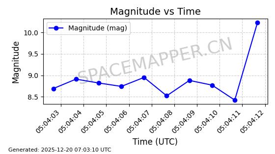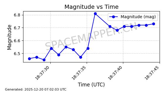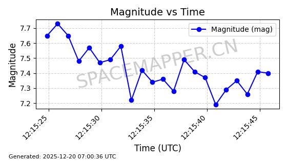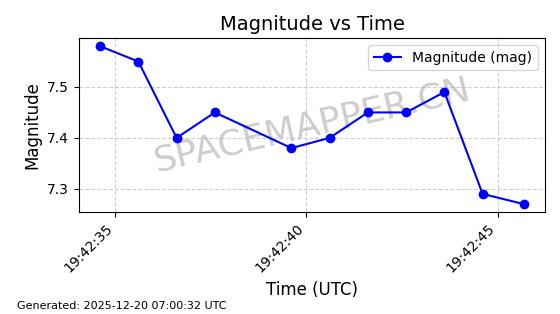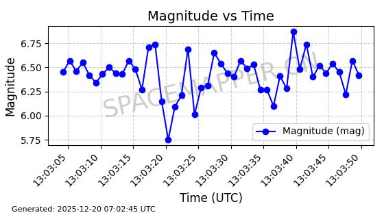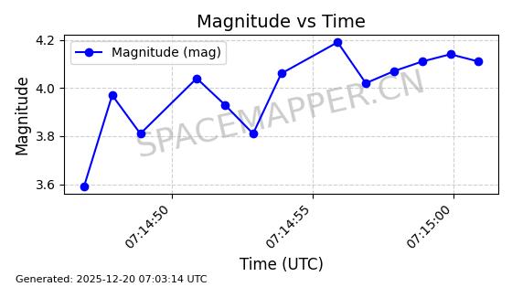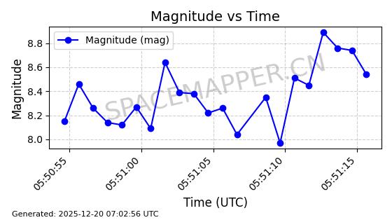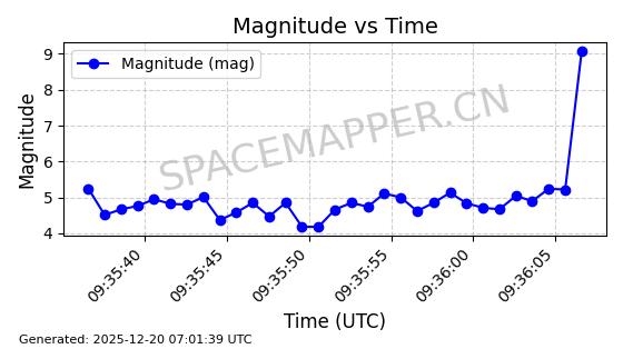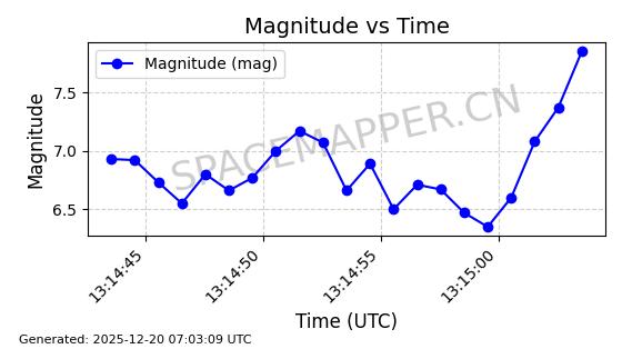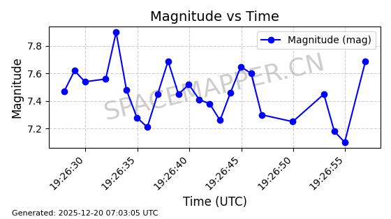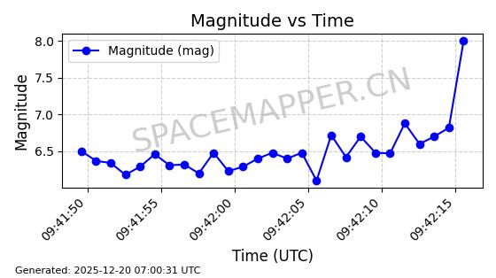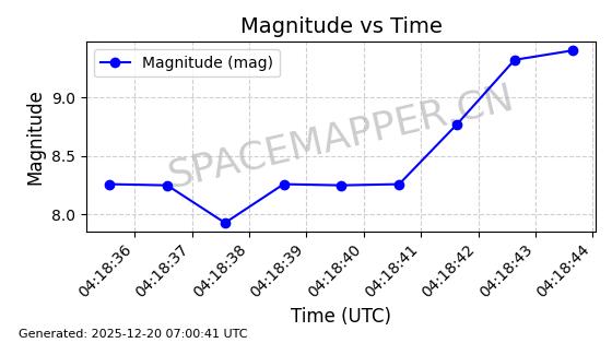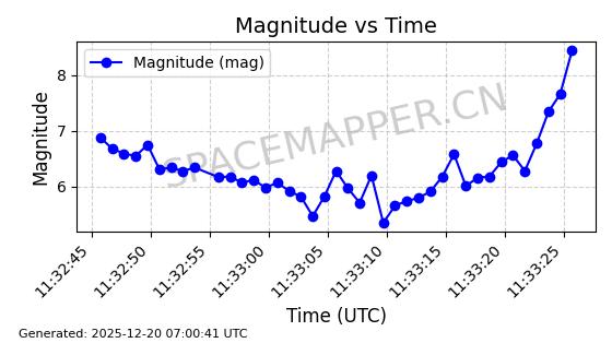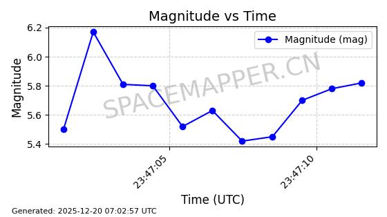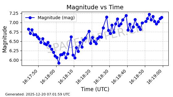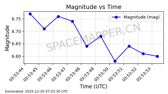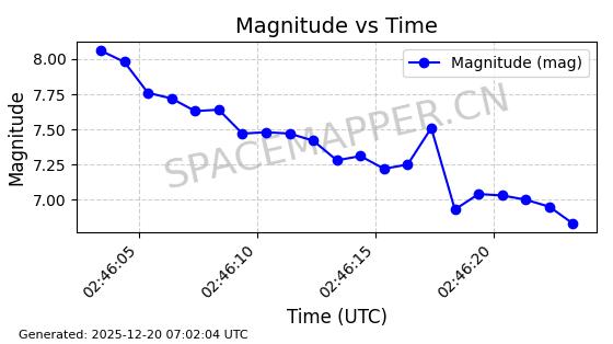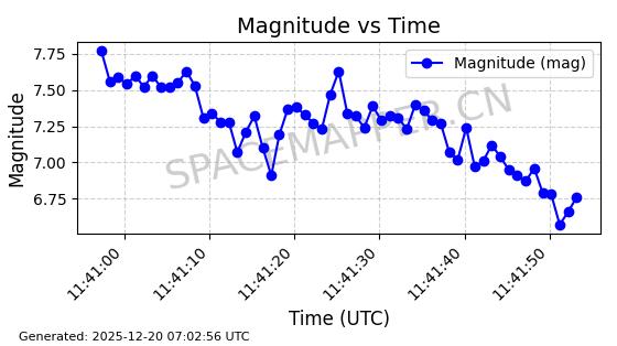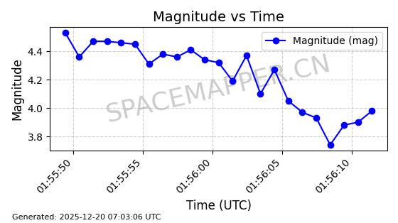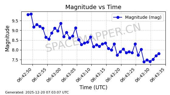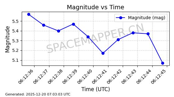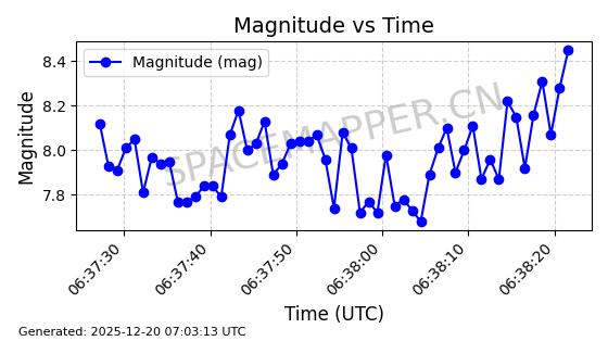 | STARLINK-32118 | 60280 | 60280 | 2024-07-28 同日期轨道 2024-132C 同批次轨道 | 在轨 | 94分钟 | 53.1610 | 474.392 | 476.008 | 0.0001178 | 2025-12-18 12:14:42 | ||