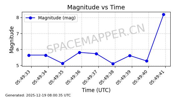 | STARLINK-32176 | 60340 | 60340 | 2024-08-02 同日期轨道 2024-136M 同批次轨道 | 在轨 | 94分钟 | 53.1601 | 474.401 | 476.099 | 0.0001238 | 2025-12-19 06:44:26 | ||