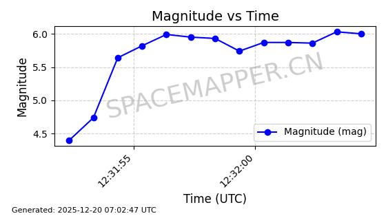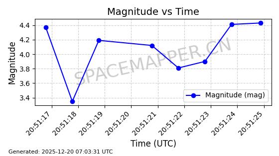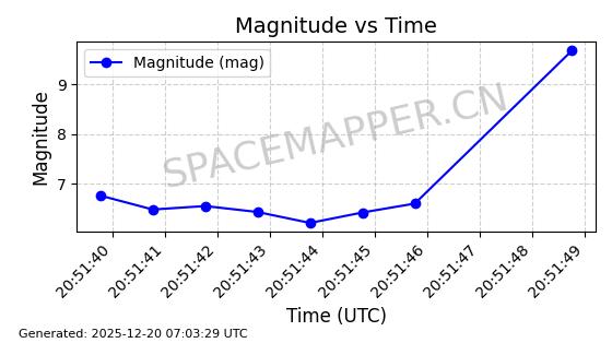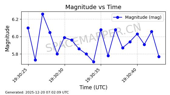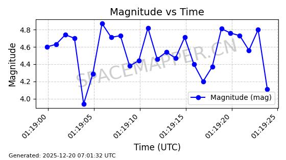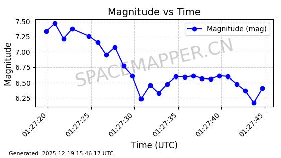 | STARLINK-32161 | 60593 | 60593 | 2024-08-20 同日期轨道 2024-150L 同批次轨道 | 在轨 | 94分钟 | 53.1615 | 474.331 | 476.157 | 0.0001332 | 2025-12-19 06:59:01 | ||