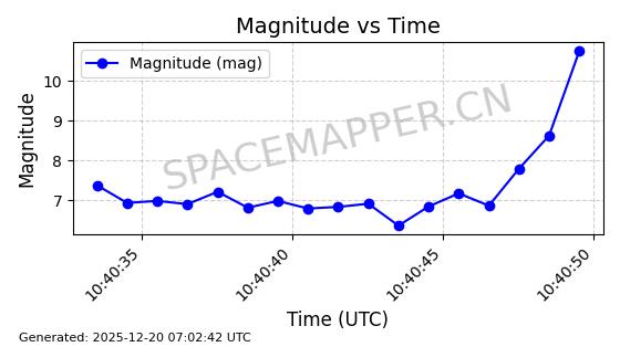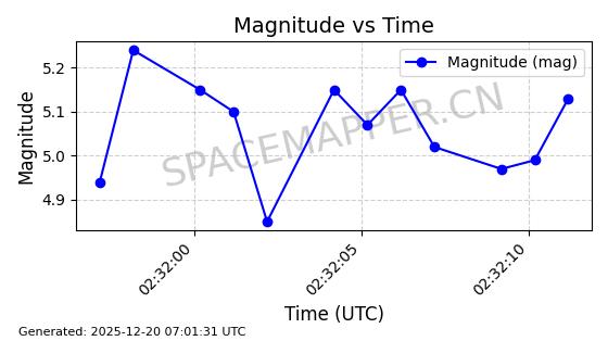 | STARLINK-32125 | 60260 | 60260 | 2024-07-27 同日期轨道 2024-131F 同批次轨道 | 在轨 | 94分钟 | 53.1607 | 474.473 | 475.955 | 0.0001081 | 2025-12-18 15:16:41 | ||
